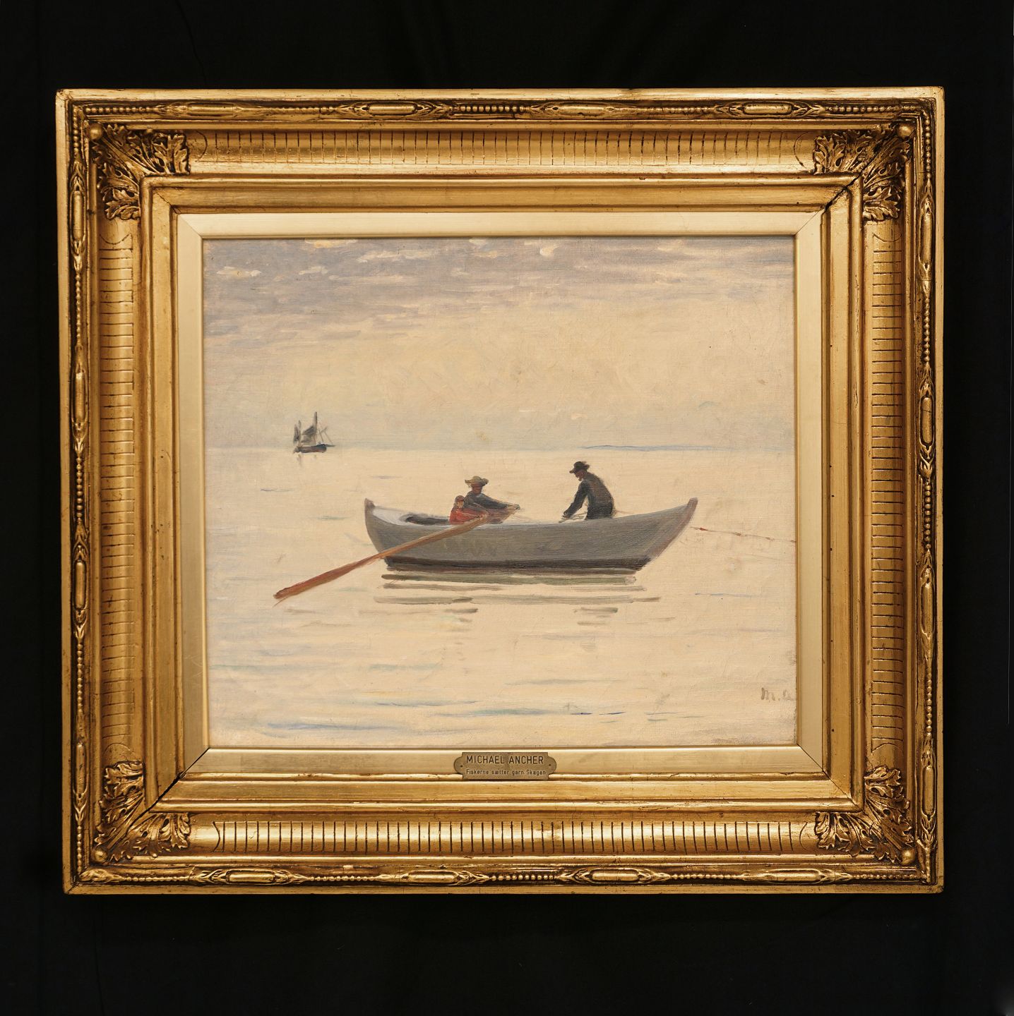Signiert "MA" um 1920. Lichtmasse: 37x43cm. Mit Rahmen: 59x65cm"> Signiert "MA" um 1920. Lichtmasse: 37x43cm. Mit Rahmen: 59x65cm"> Aabenraa Antikvitetshandel * Michael Ancher, 1849-1927: "Die Fischer legen ihre Netze aus. Skagen". Öl auf Le Signiert "MA" um 1920. Lichtmasse: 37x43cm. Mit Rahmen: 59x65cm">