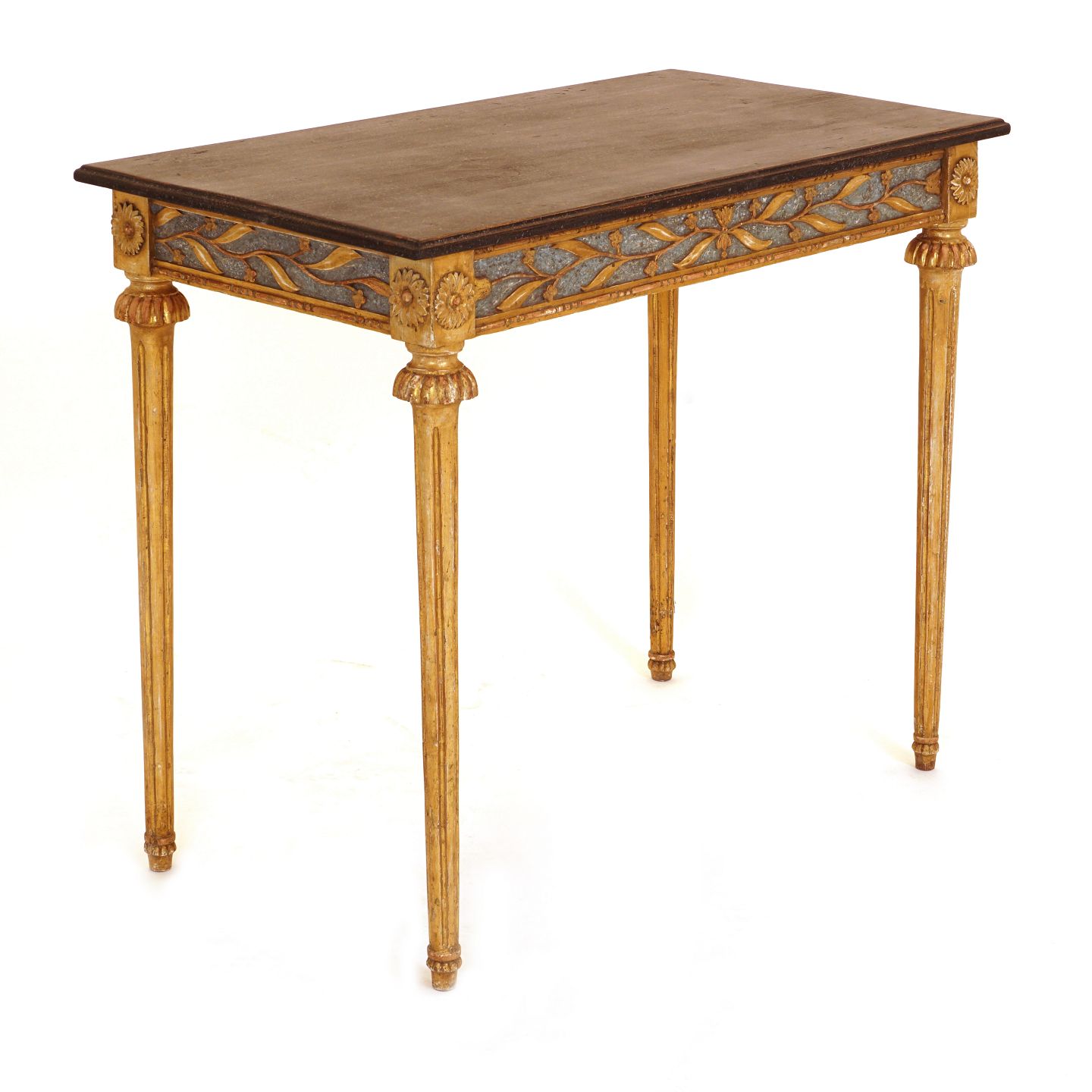 Vergoldete Louis XVI Konsole mit schwarzer Holzplatte