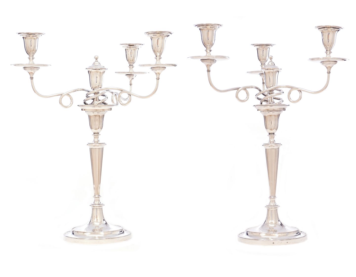Ein Paar grosse Silbergirandolen von Johann Hues, Hamburg, 1768-1802. Abgebildet in "Die Goldschmiede Hamburgs", III, p. 194. H: 51cm. G: 3.951gr