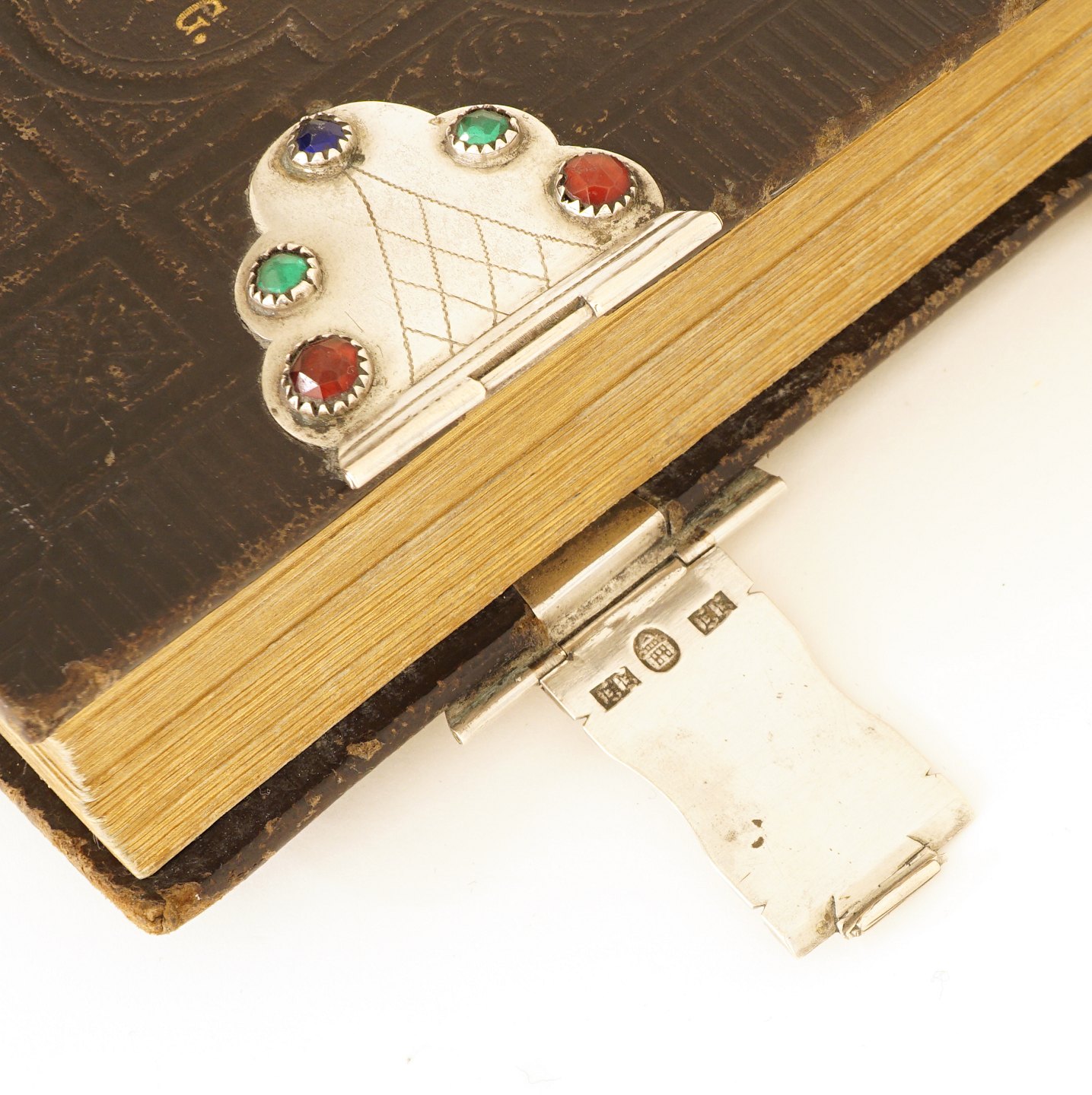Salmebog monteret med sølvbeslag med talrige flusser Hofguldsmed Jens Jensen, Sønderborg