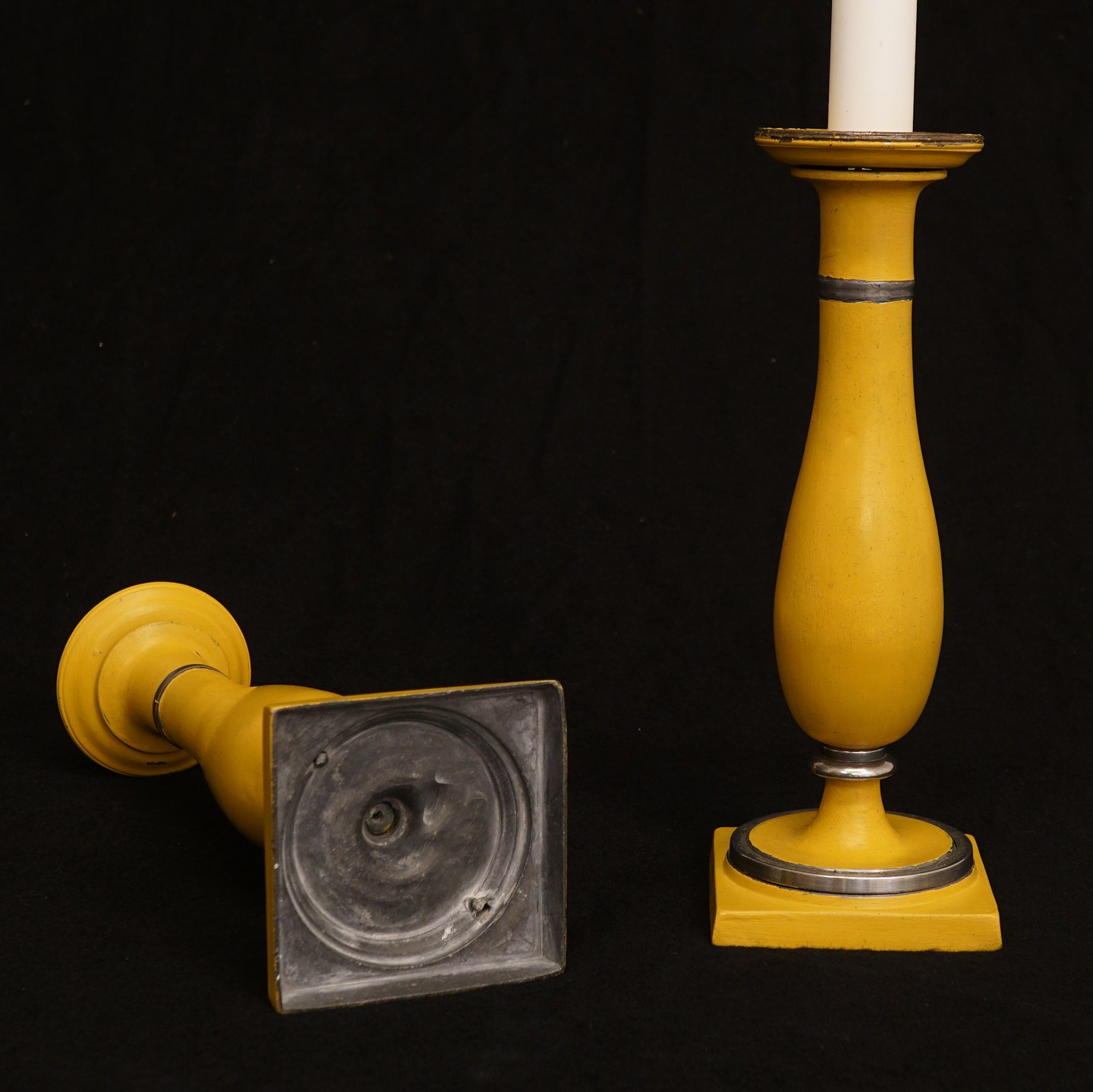 Et par gule Augustenborg-stager. Danmark ca. år 1840. H: 21,6cm