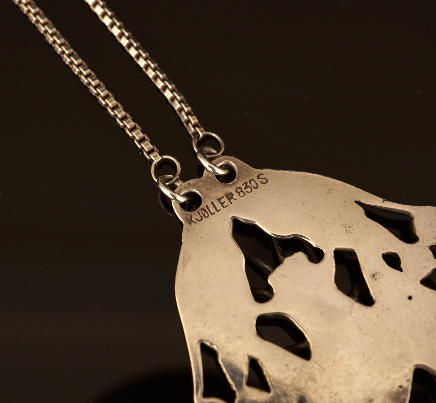 Kjøller, Denmark: Pendant with insect on leafs. Silver. Pendant: 6,6x3,9cm. Necklace L: 44,5cm
