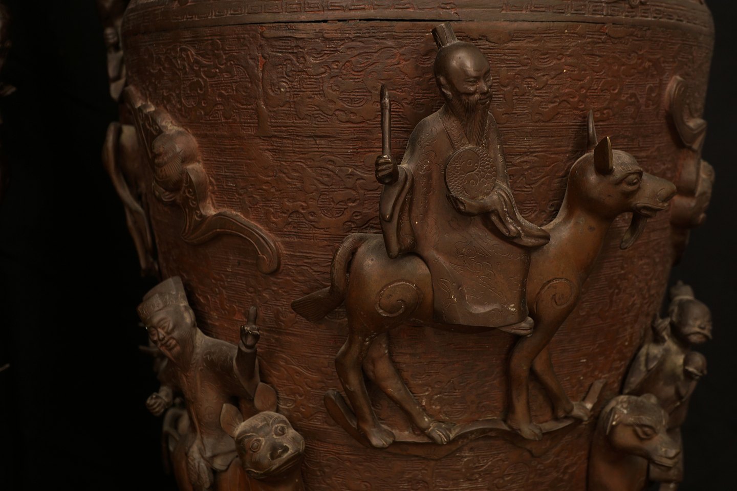 A pair of large bronze vases. China circa 1870-80. From the Danish castle Sophienberg at Copenhagen. H: 110cm