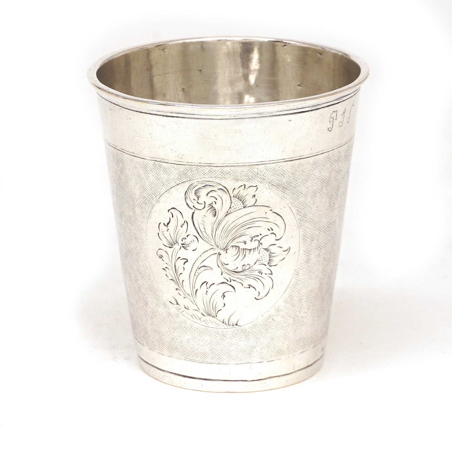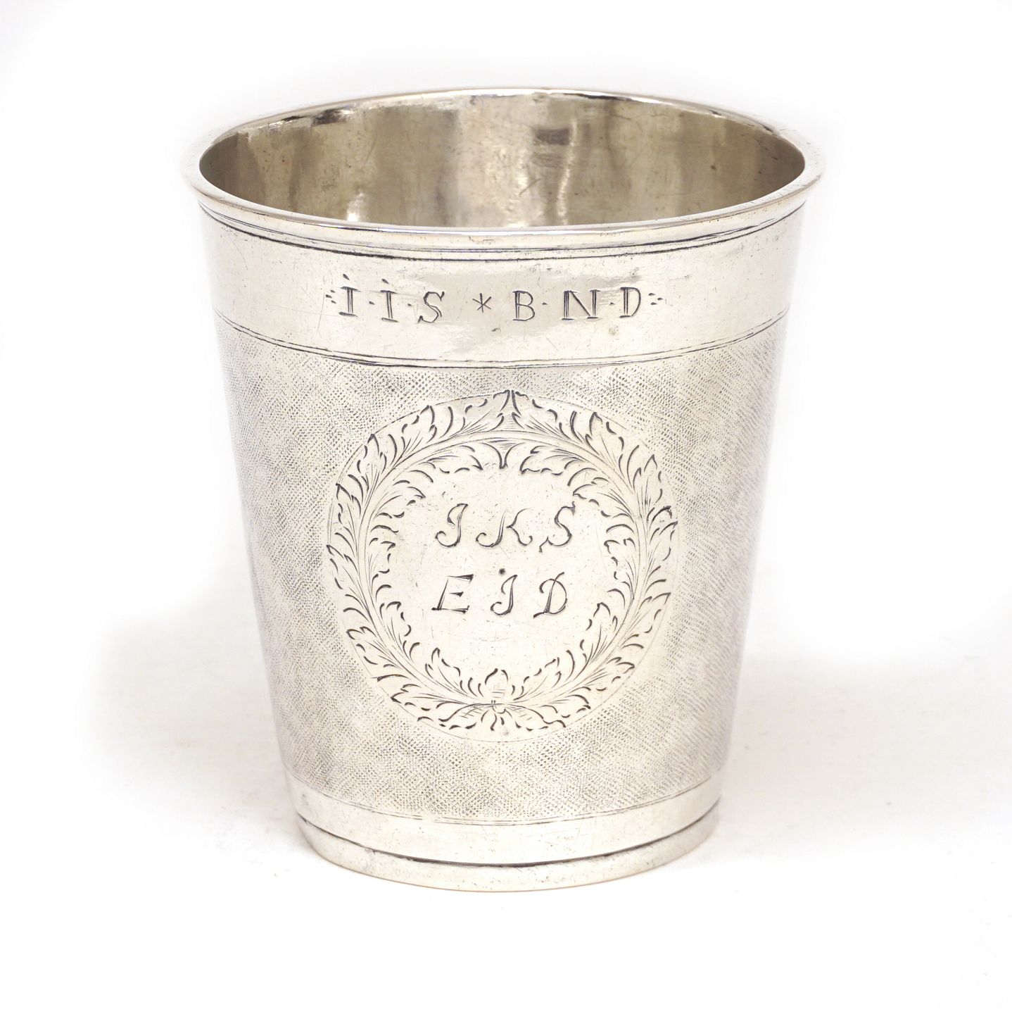A 18th century silver cup Made by B. Christoffersen der Weide, Horsens, Denmark, 1697-1747 H: 8,8cm. G: 115gr Item number: 28633
