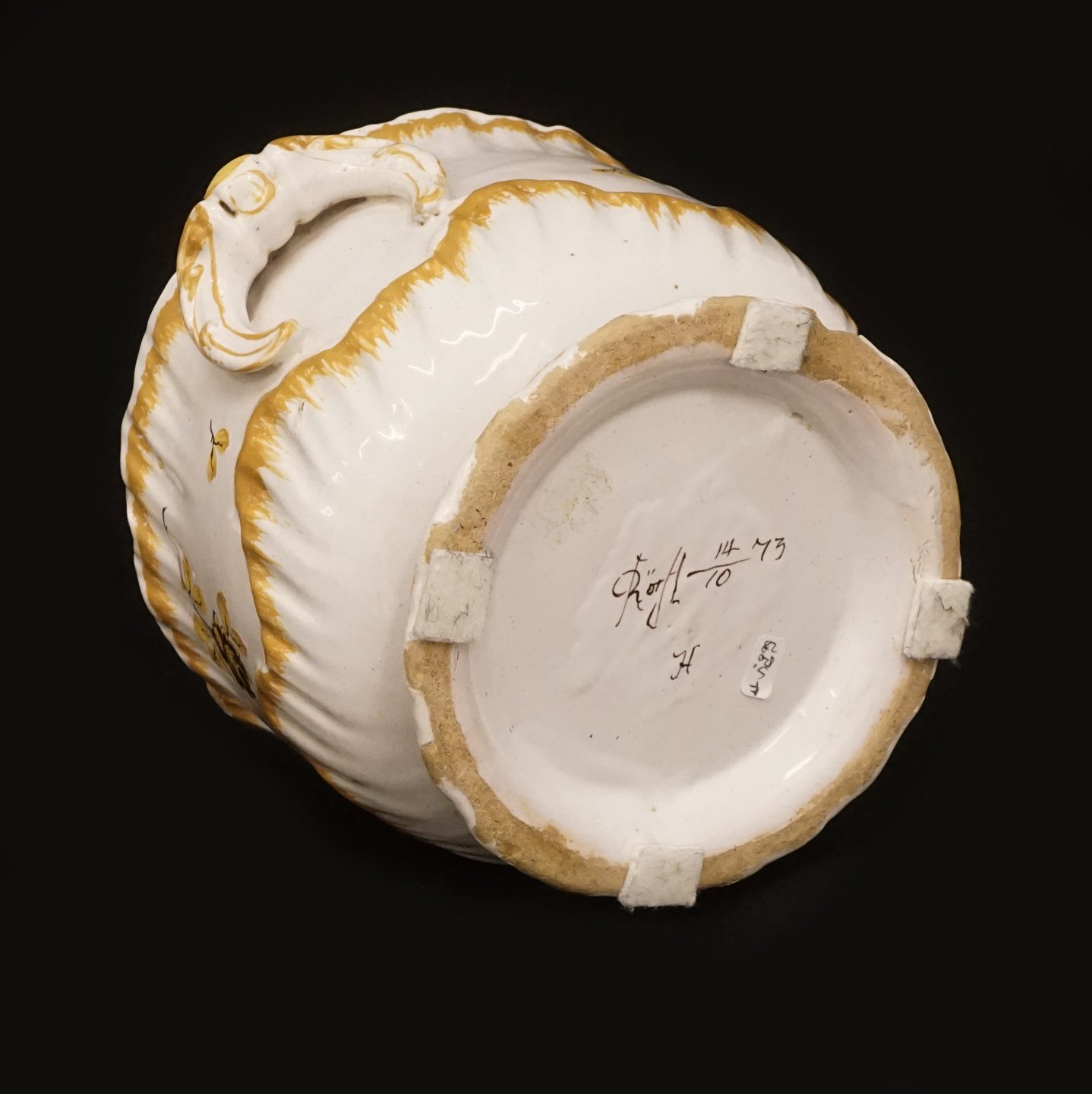 Gulligt dekoreret vinkøler af fajance. Signeret Rörstrand, Sverige, 14.10.1773. H: 12,6cm