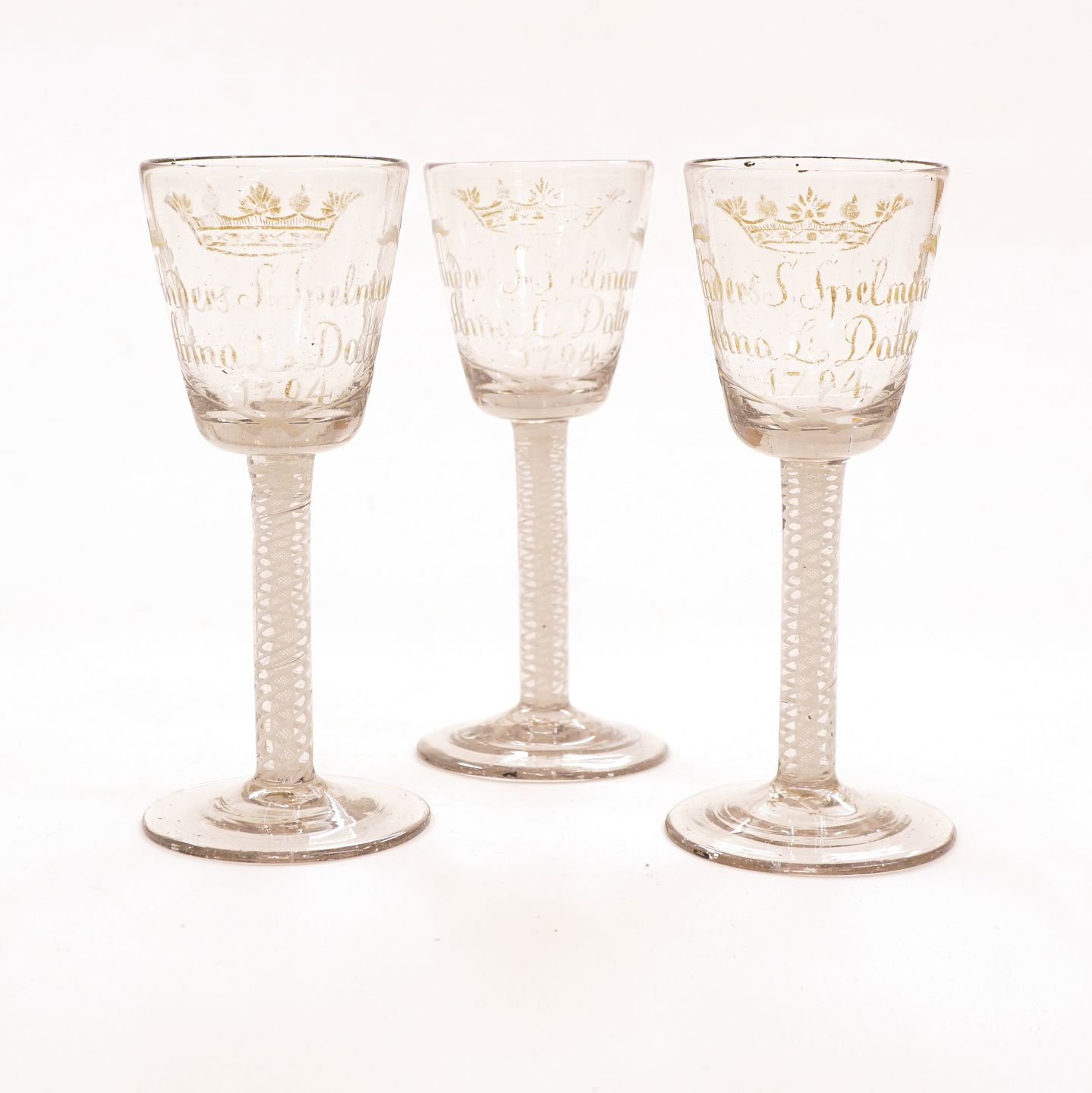 A set of three Norwegian glasses. Hurdal, Norway, 1794. H: 15cm