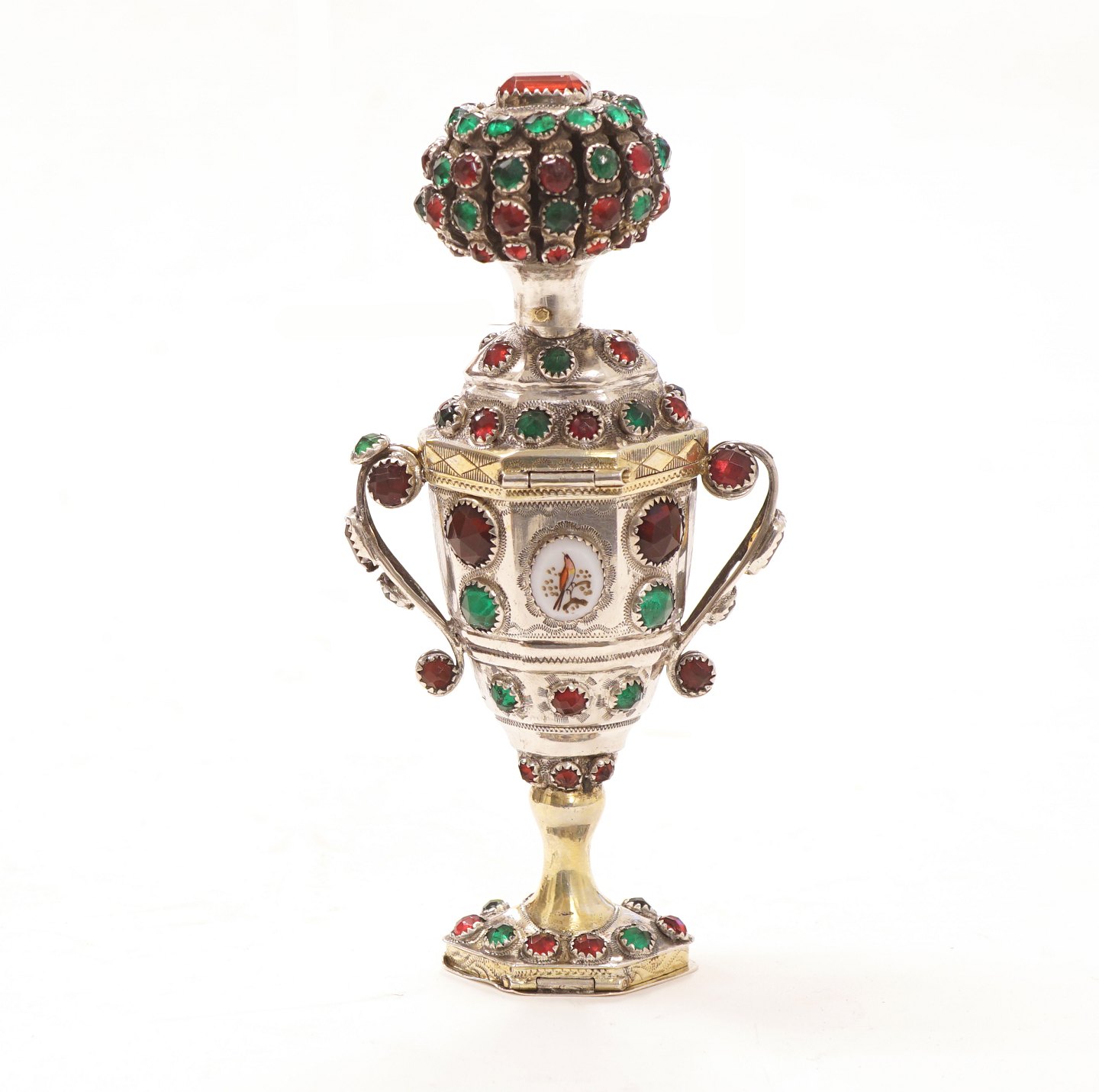 Jens Jensen, 1831-70, Sonderburg: Riechdose aus Silber mit 110 Glassteinen