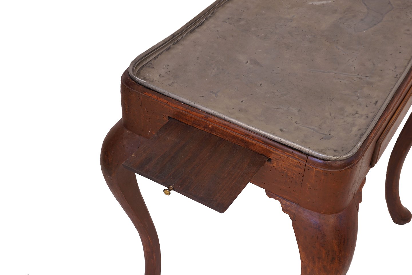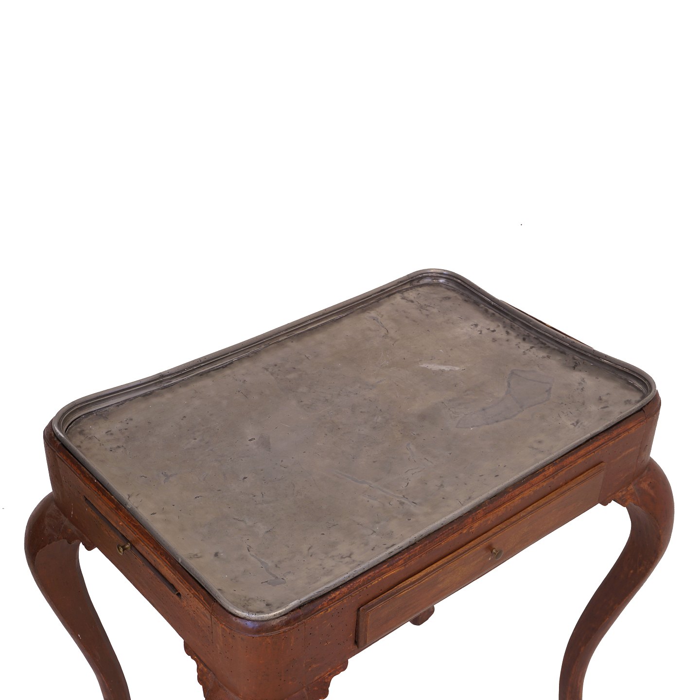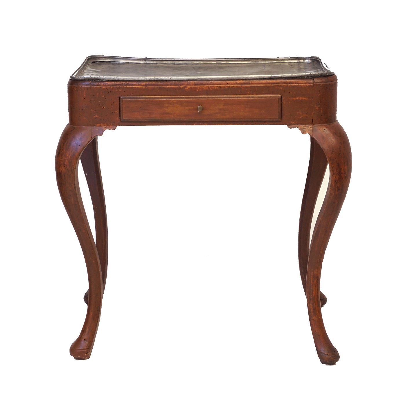 Dansk rokoko bord med tin plade og lysudtræk. Danmark ca. år 1760. H: 75cm. Plade: 70x46cm