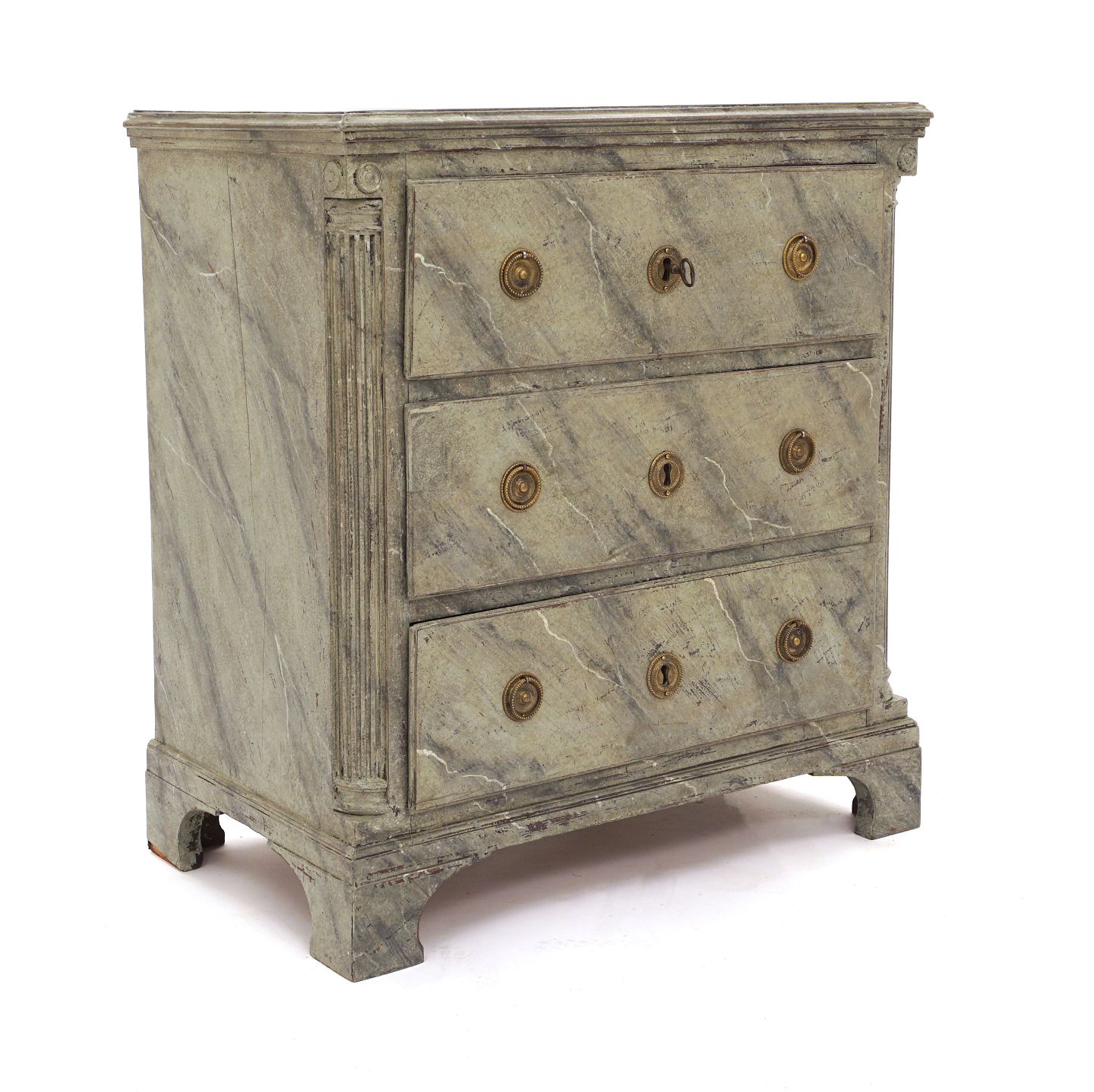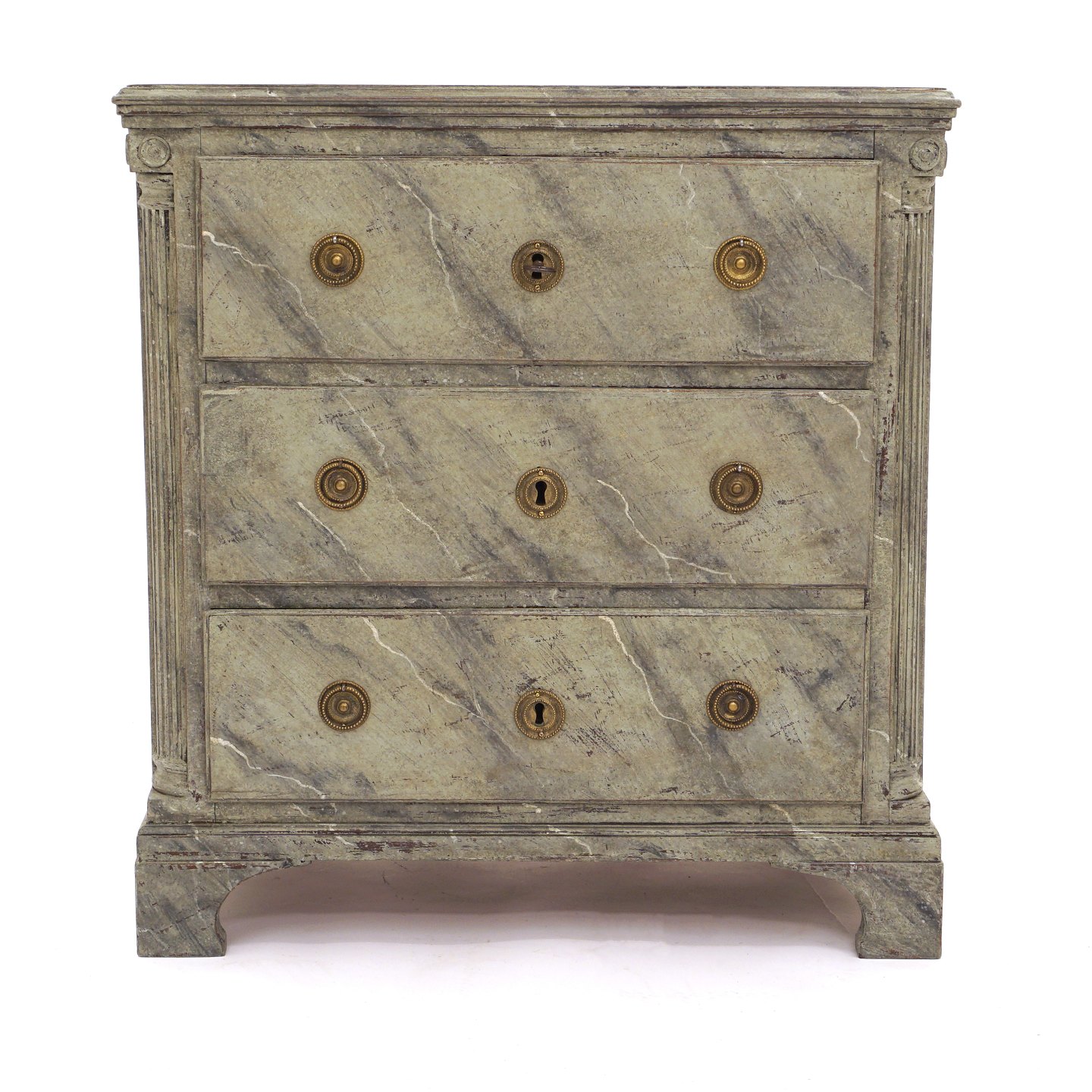 Gustavian chest of drawers with gilt canted fluted