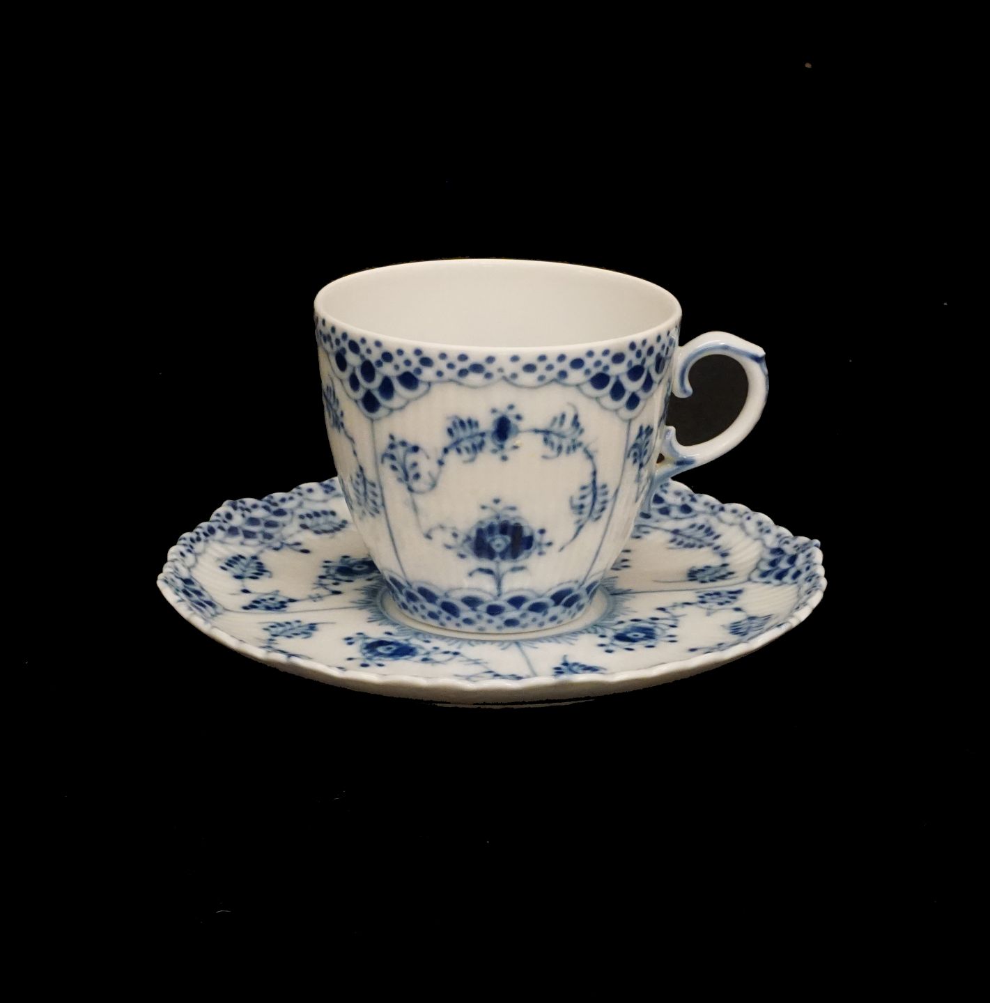 Royal Copenhagen blue fluted full lace coffee cups