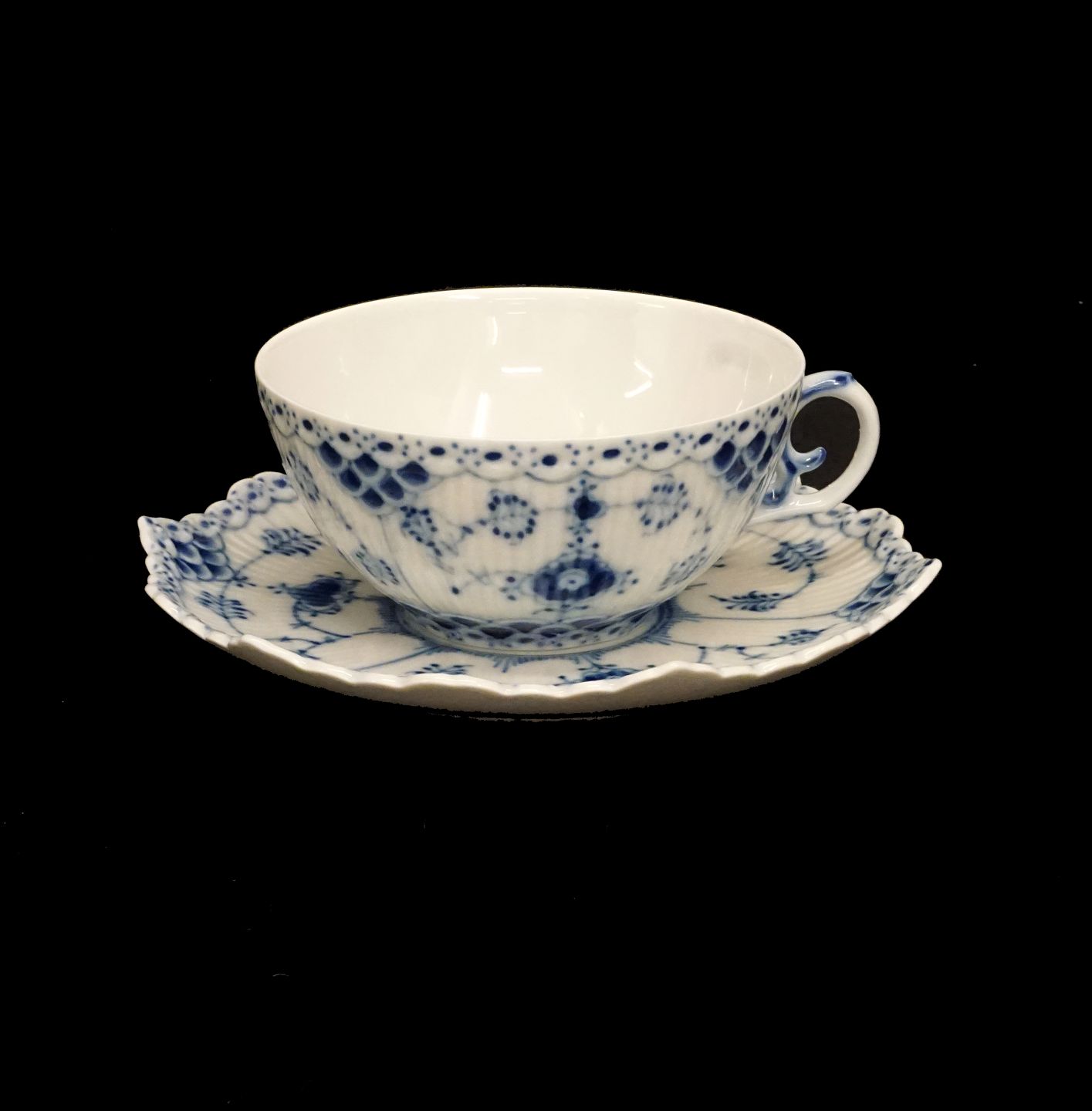 Royal Copenhagen musselmalet helblonde tekop med underkop. #1130. 1. sortering. D kop: 10cm
