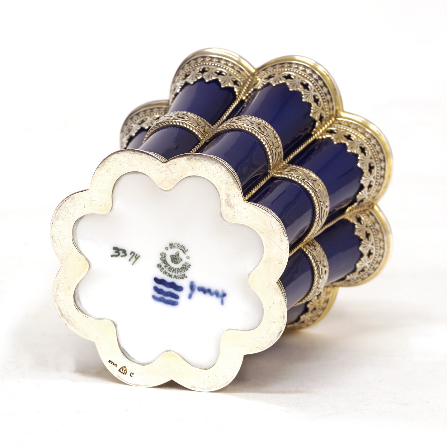 Stort Royal Copenhagen Margrethebæger i porcelæn med sølvmontering fra A. Michelsen. H: 12cm