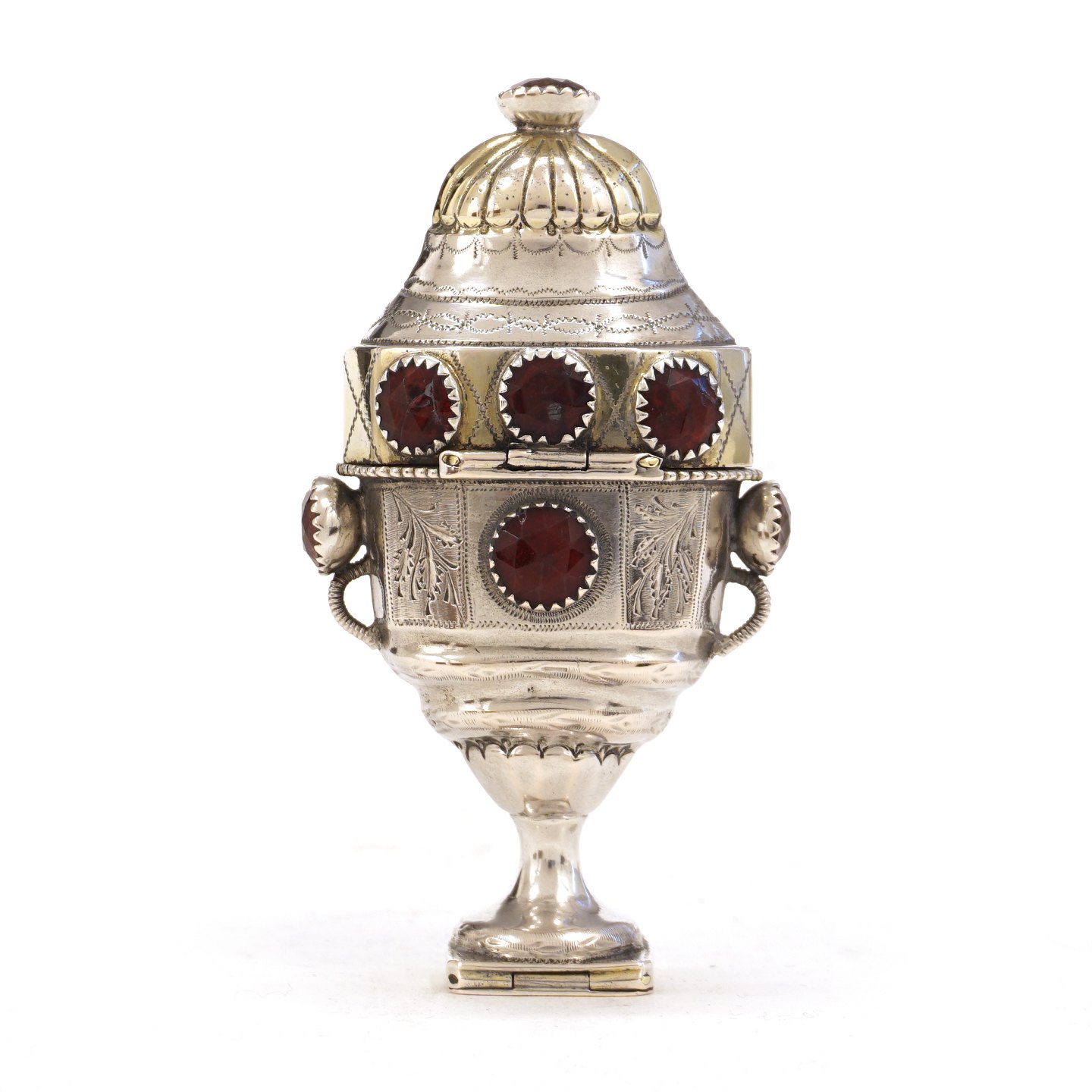 An early 19th century Danish partly gilt silver vinaigrette. Johan Adolf Müller, 1789-1850, Haderslev. H: 10,1cm