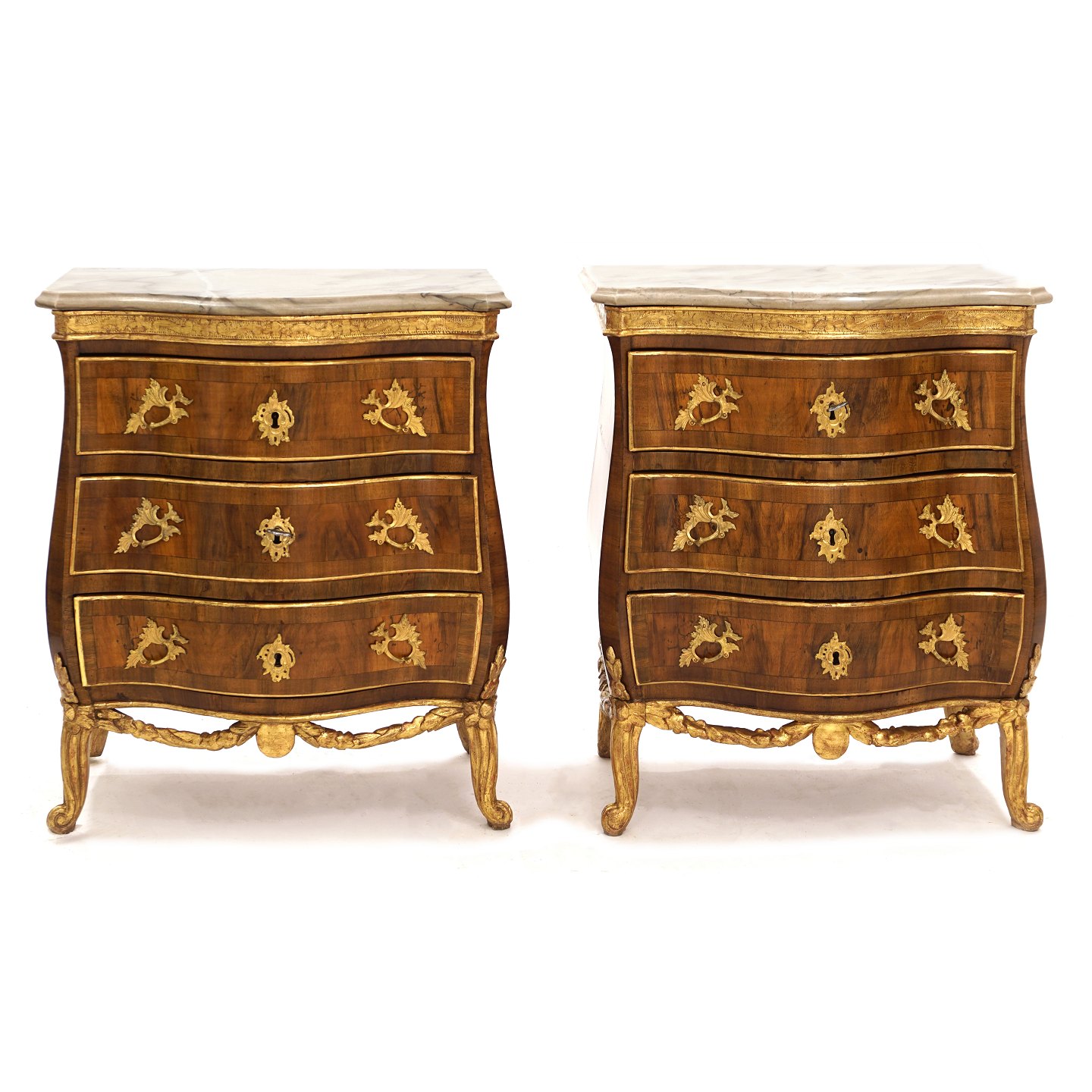 Pair of Danish mid 18th century partly gilt walnut chest of drawers Denmark circa 1750 H: 78cm. W: 67cm. D: 44cm Item number: 27318