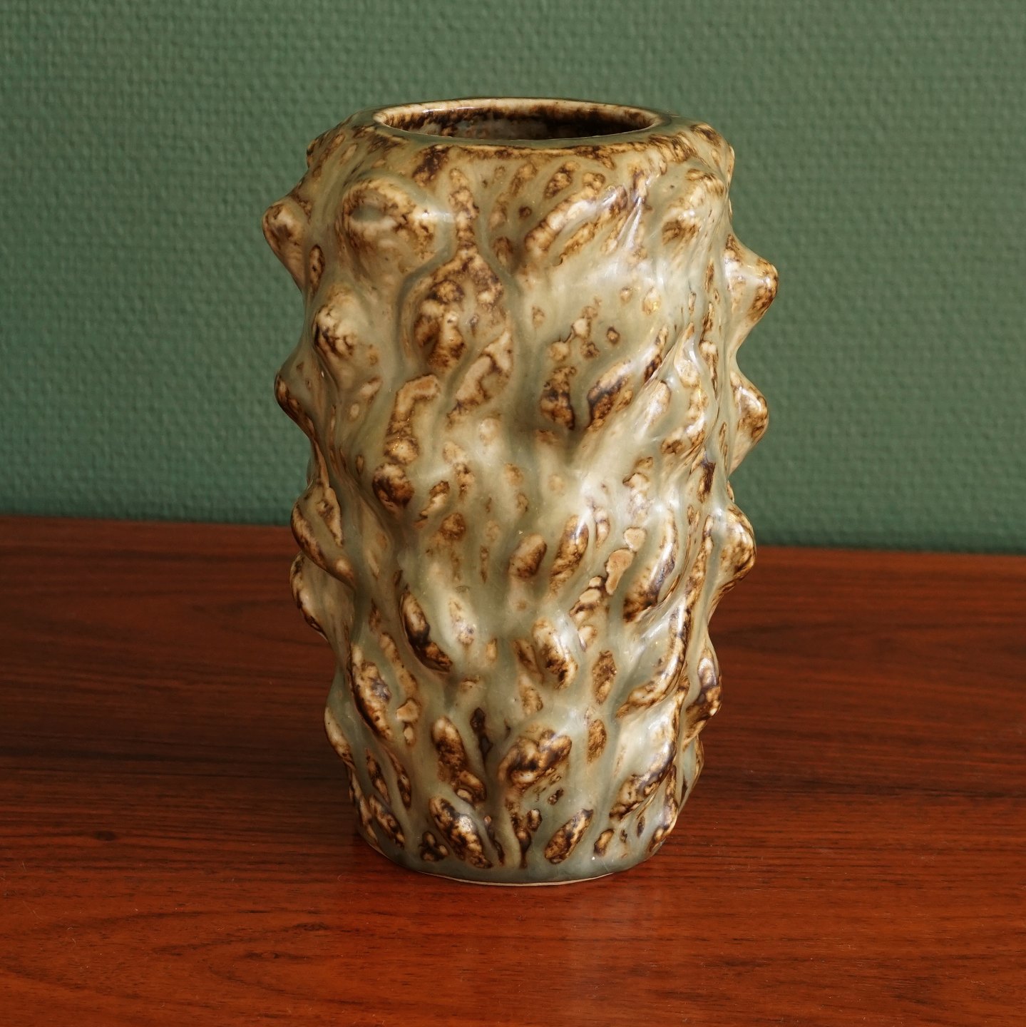 Salto stentøjsvase. Axel Salto for Royal Copenhagen: Stentøjsvase i spirende stil med sungglasur. Signeret Salto. #20701. H: 20cm