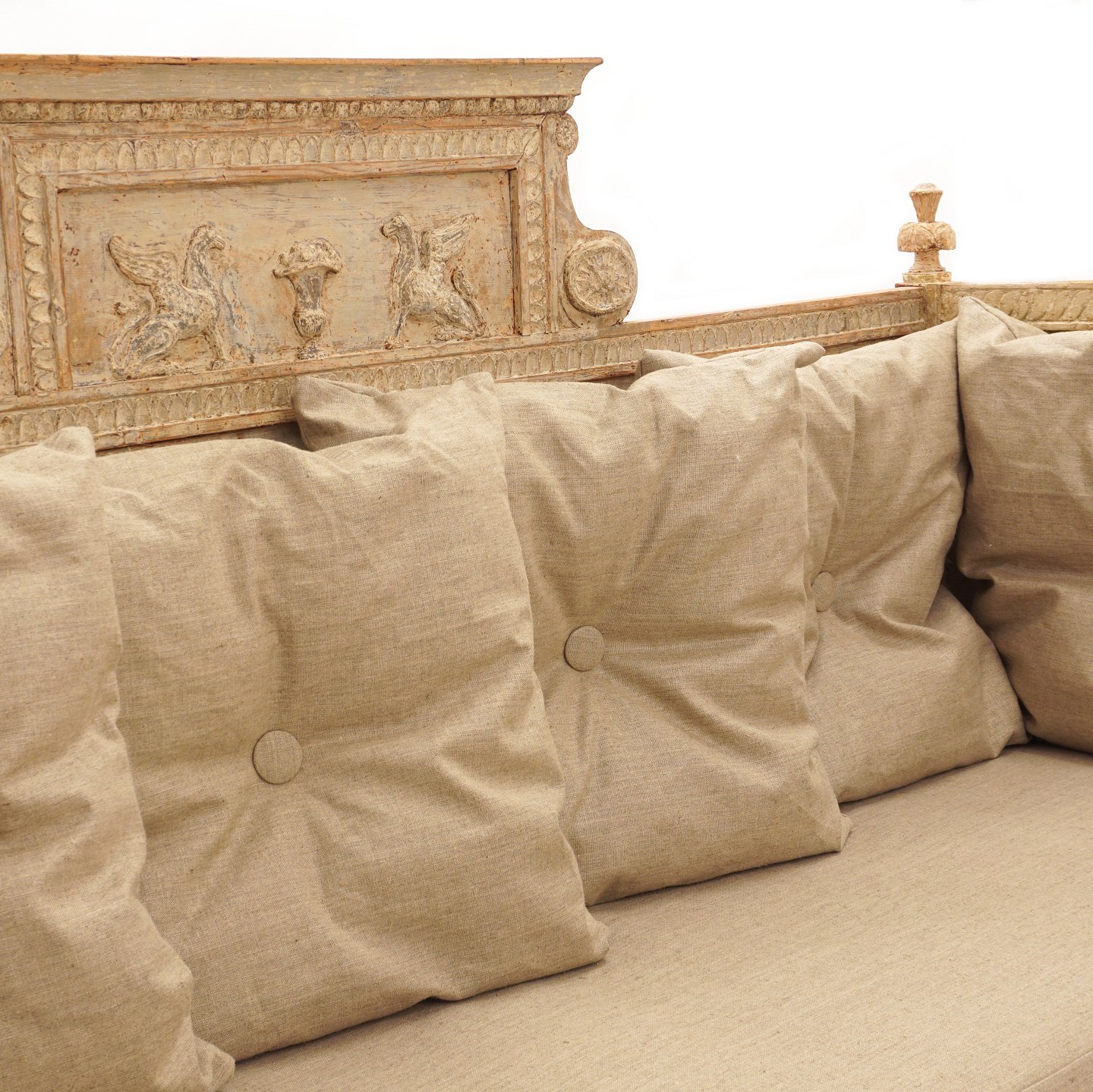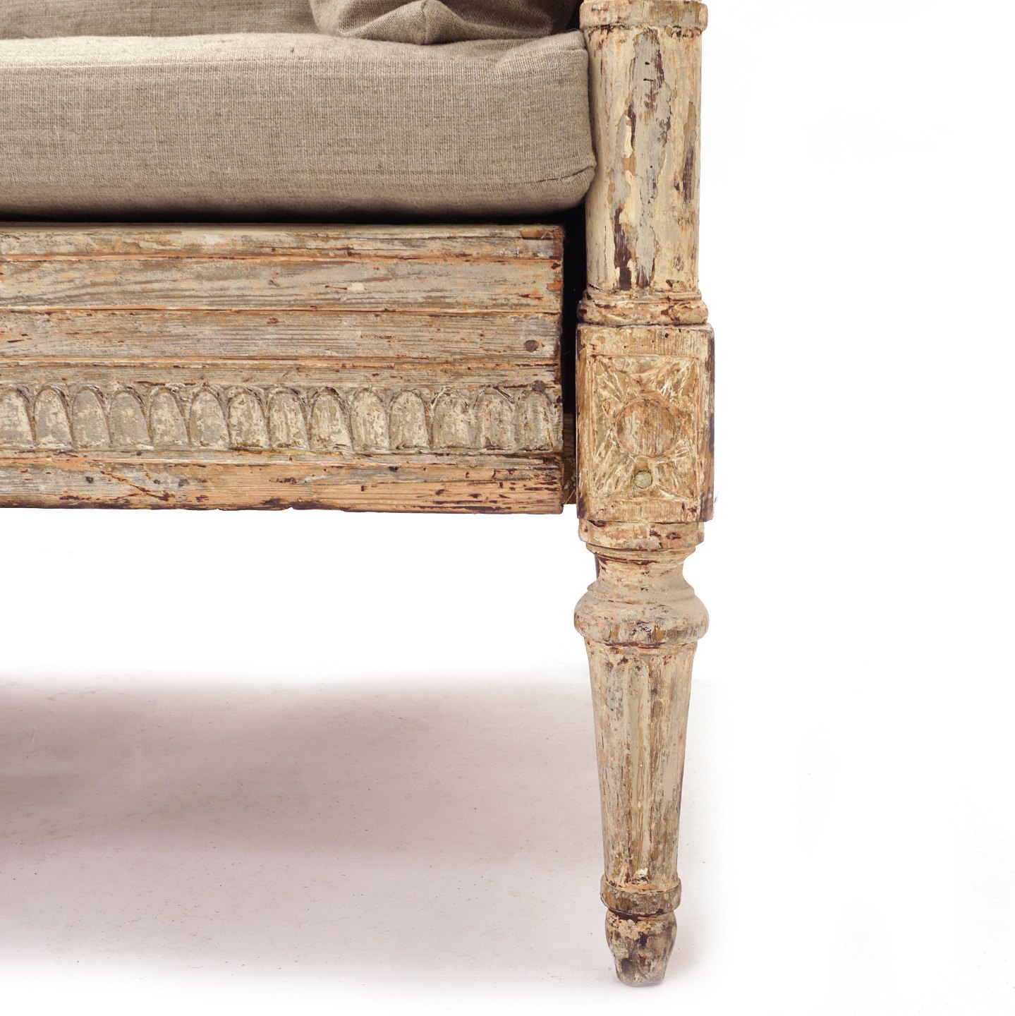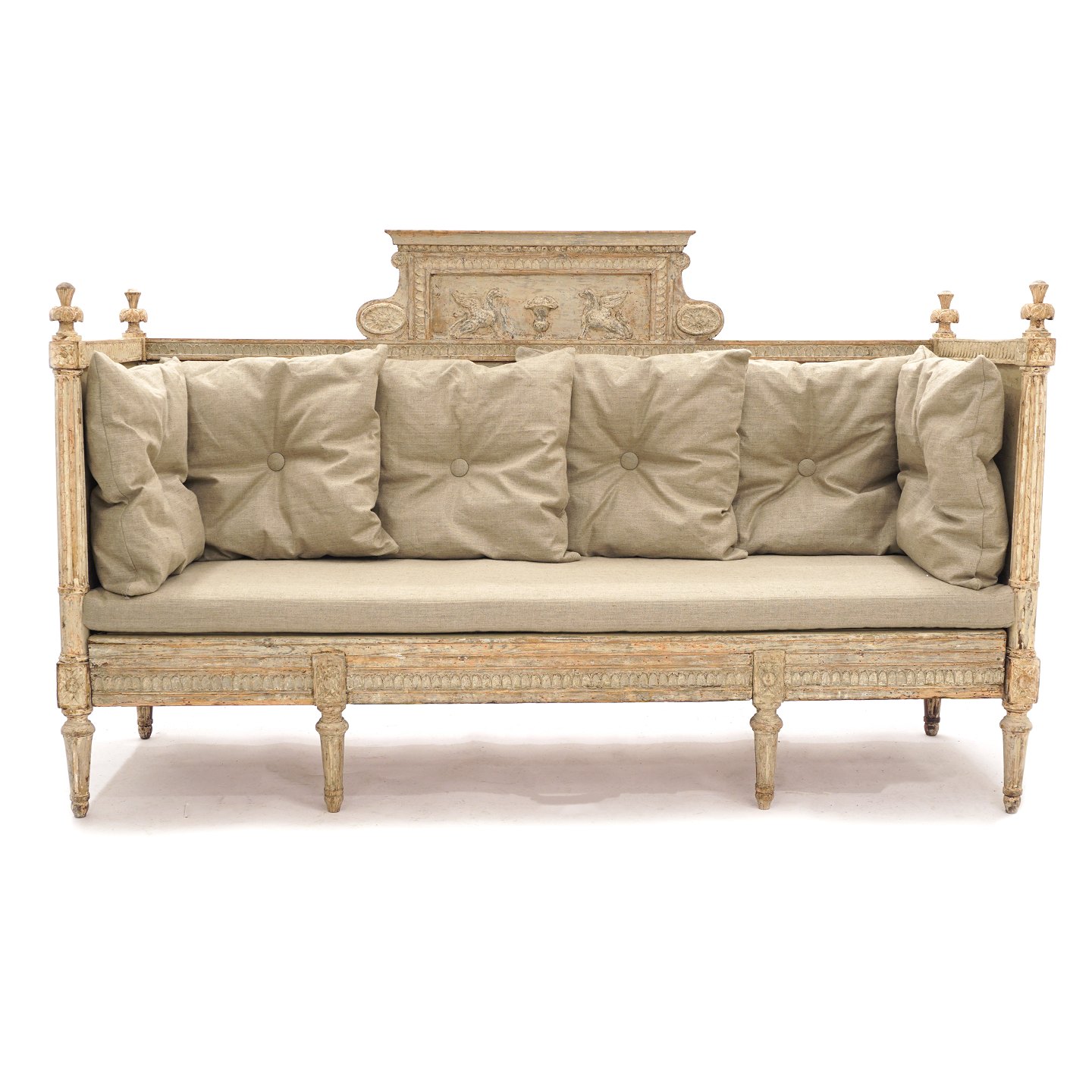 Late Gustavian light grey decorated Sofa. Sweden circa 1800. L: 190cm. D: 63cm. H: 116cm. H S: 44cm