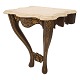 Pair of partly gilt Rococostyle console table with imitated marble wooden tops. Denmark circa 1850. H: 77cm. Top: 70x48cm