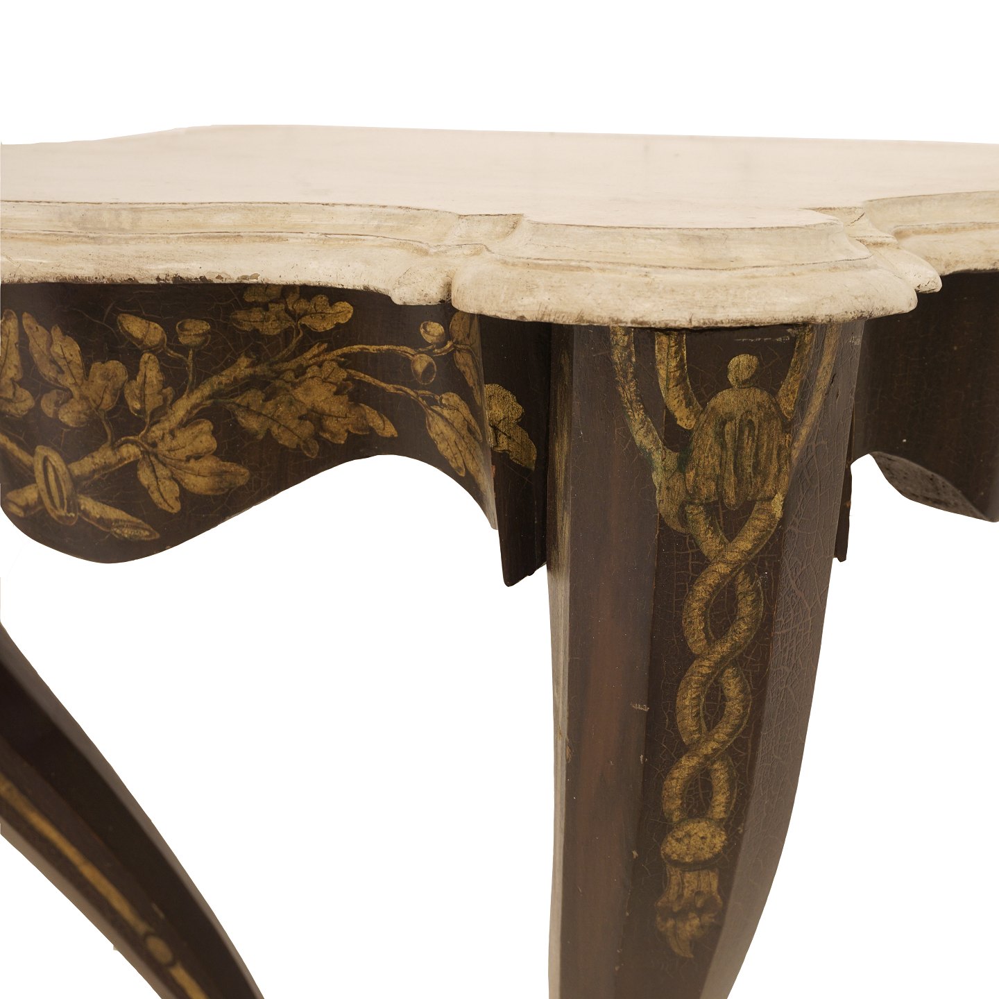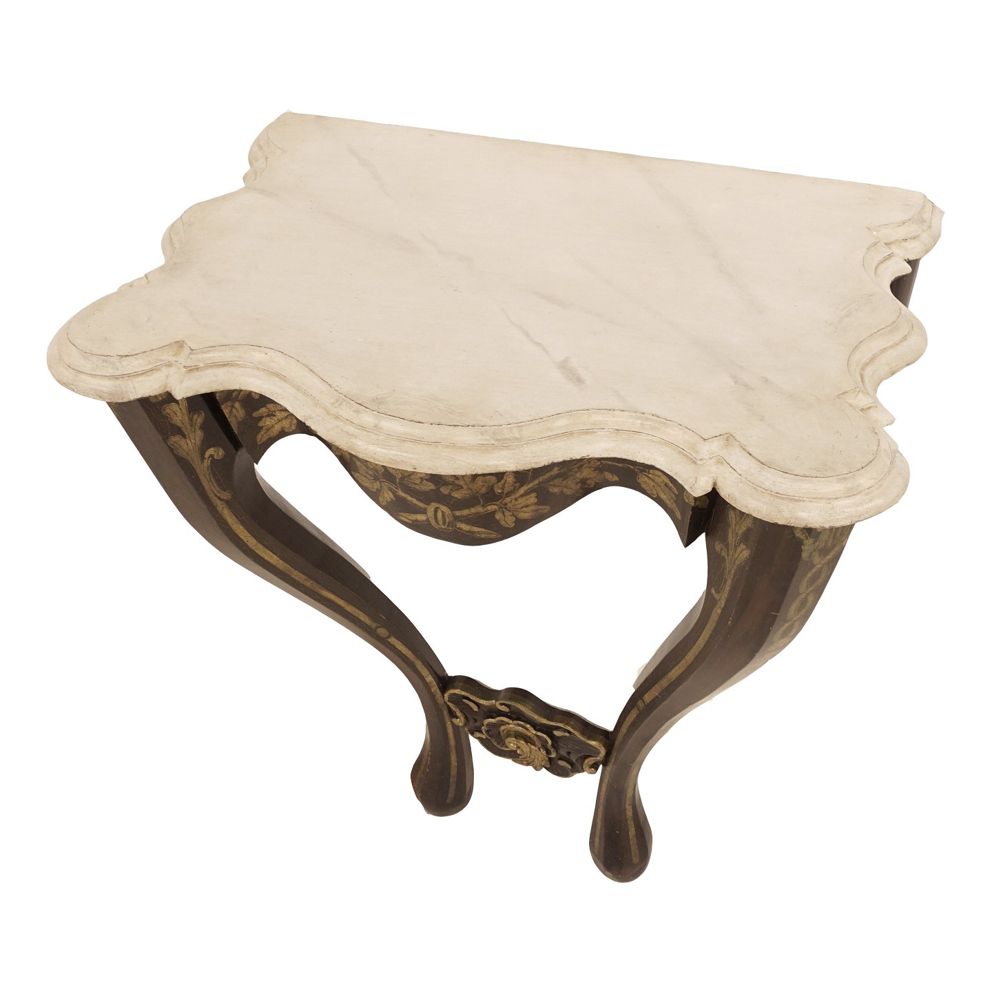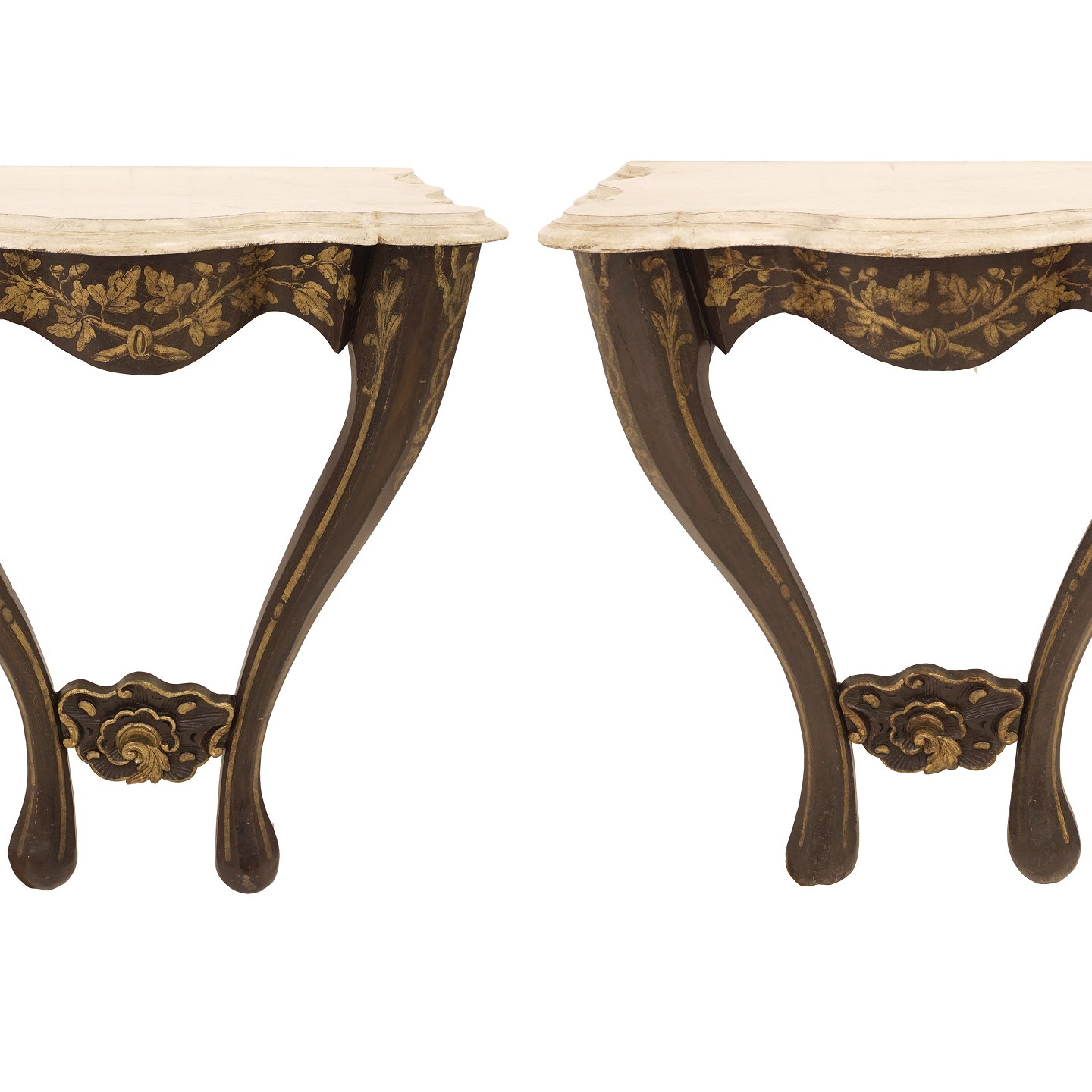 Pair of partly gilt Rococostyle console table with imitated marble wooden tops