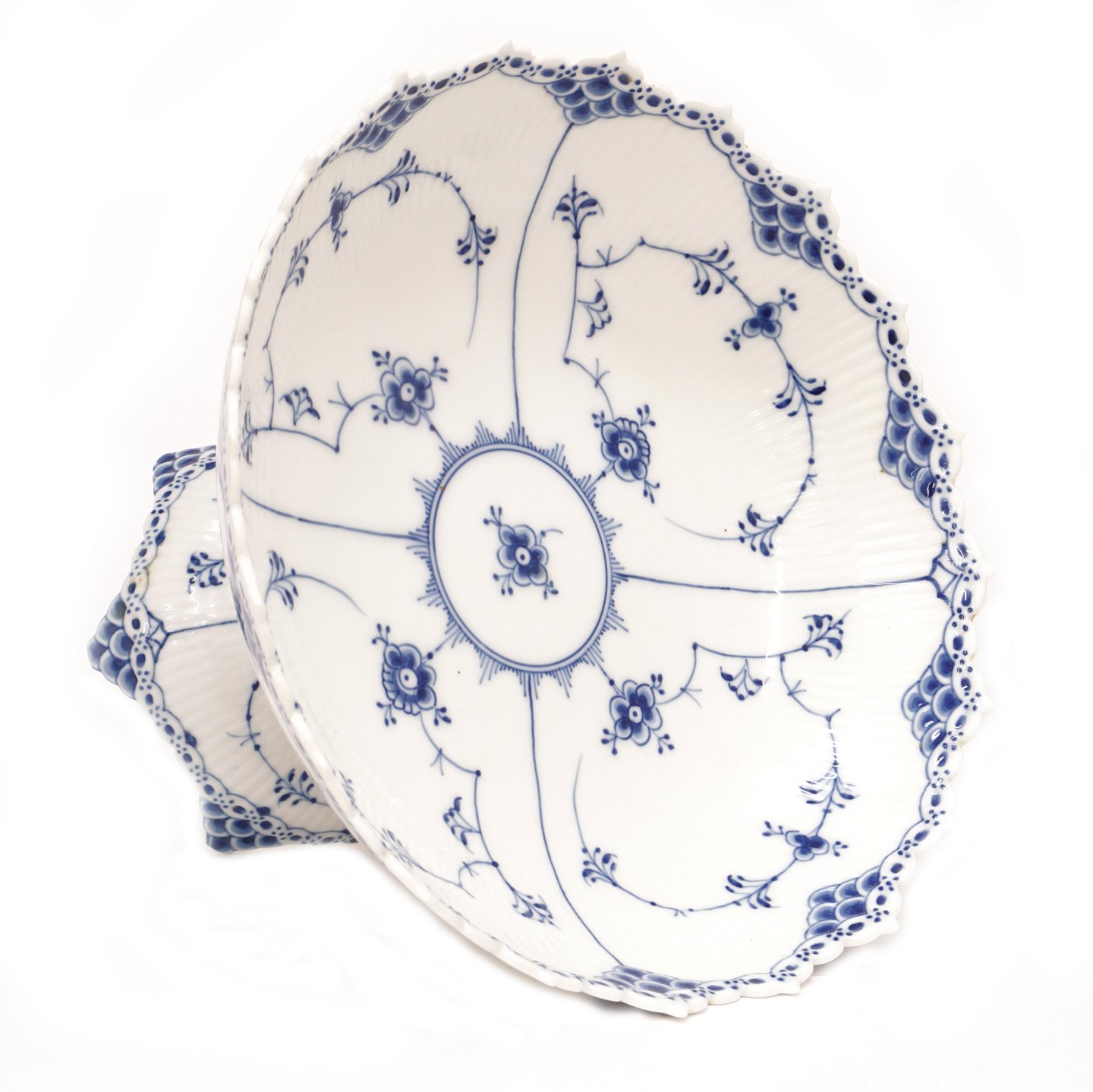 Royal Copenhagen blue fluted half lace cake stand. 1. quality. #634. H: 17cm. D: 28cm