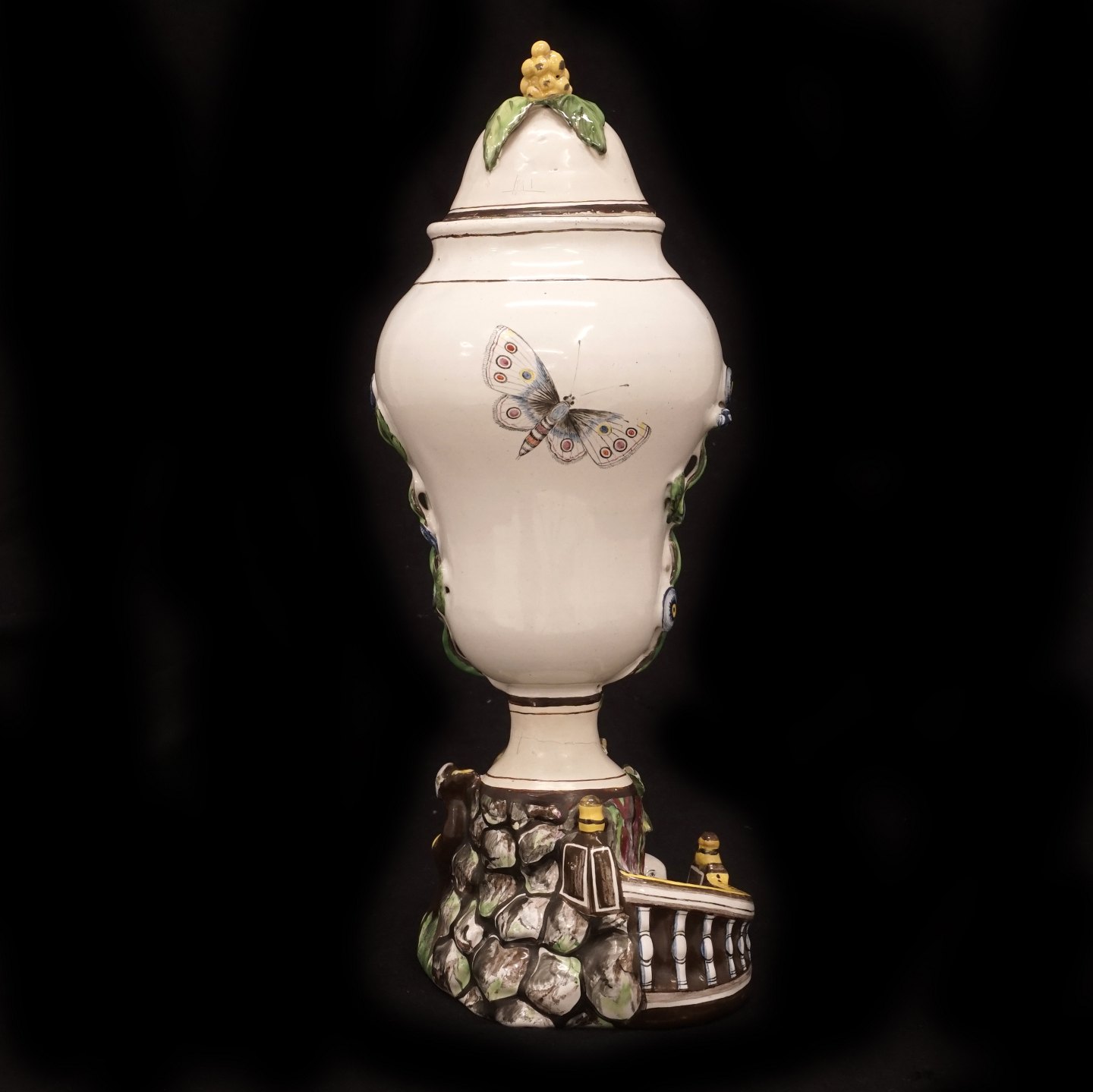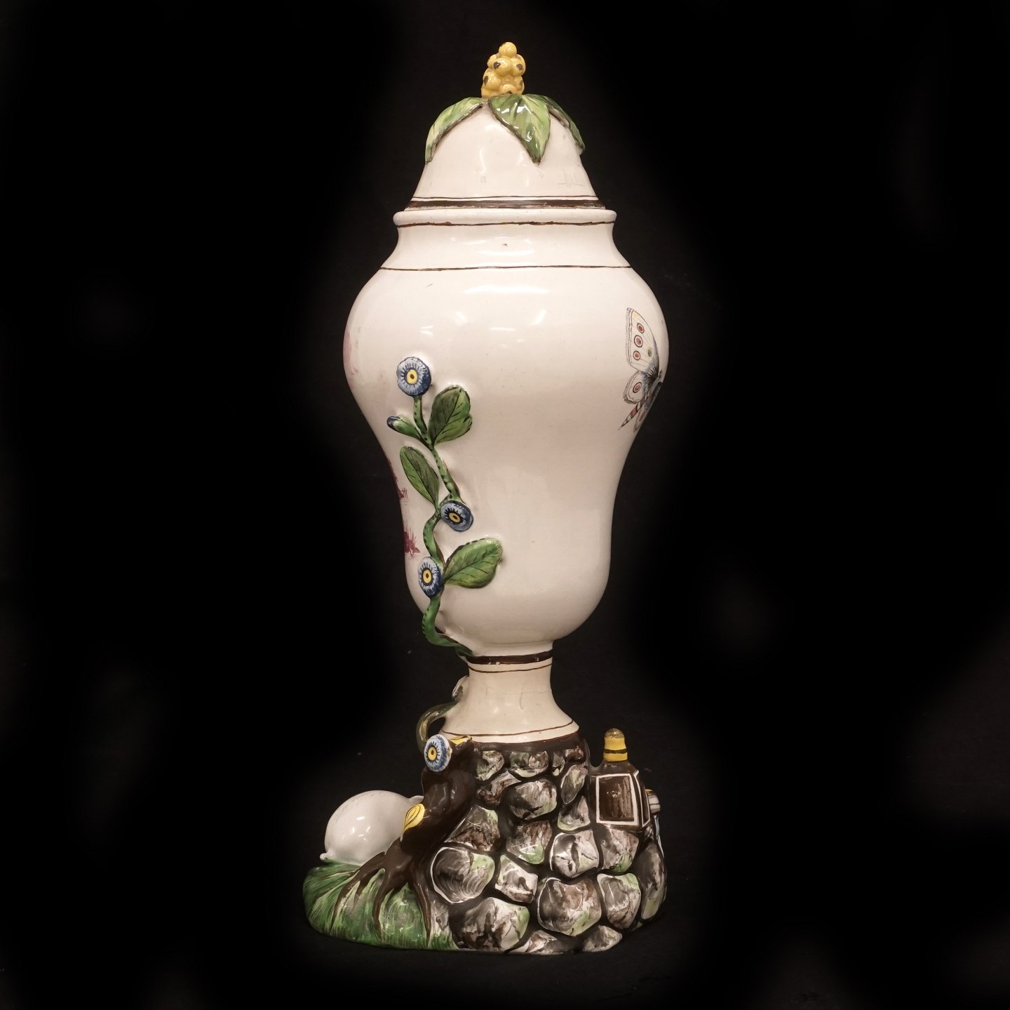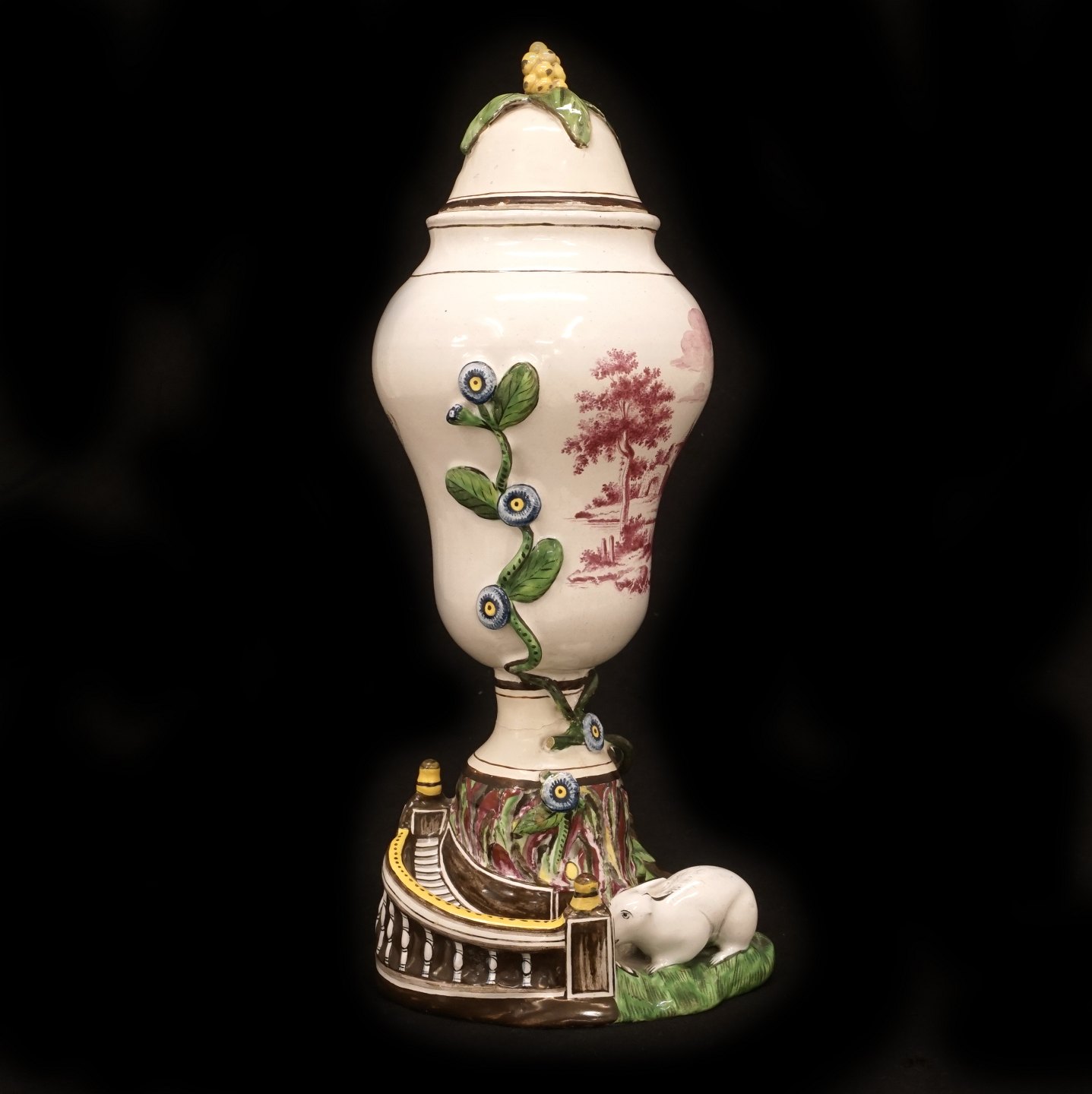 Polychrome decorated Marieberg, Sweden, faience lidded vase