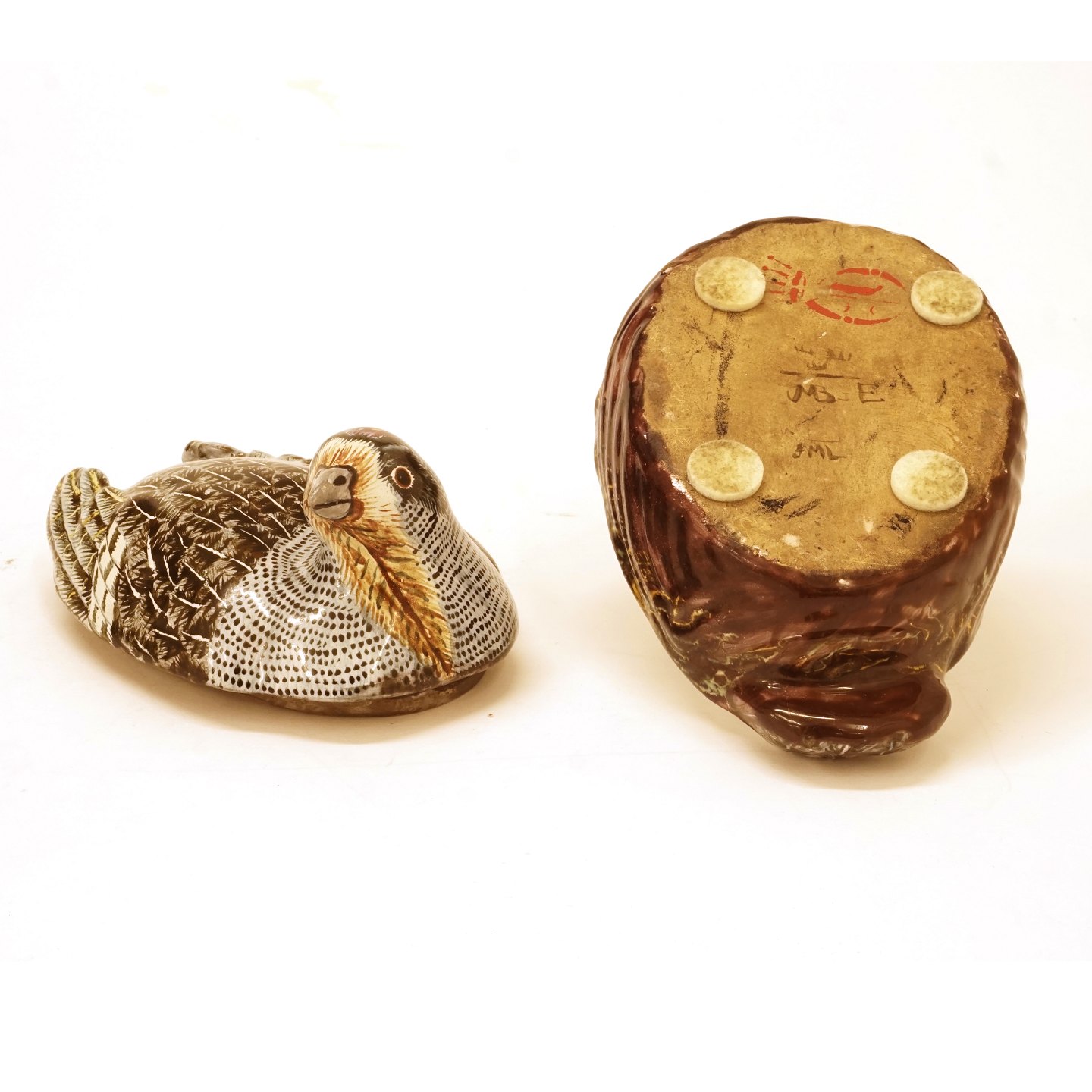 Polychrome Rococo faience tureen in the shape of a partridge Signed, Marieberg, Sweden, circa 1770 H: 9,5cm. L: 16cm Item number: 34310 A