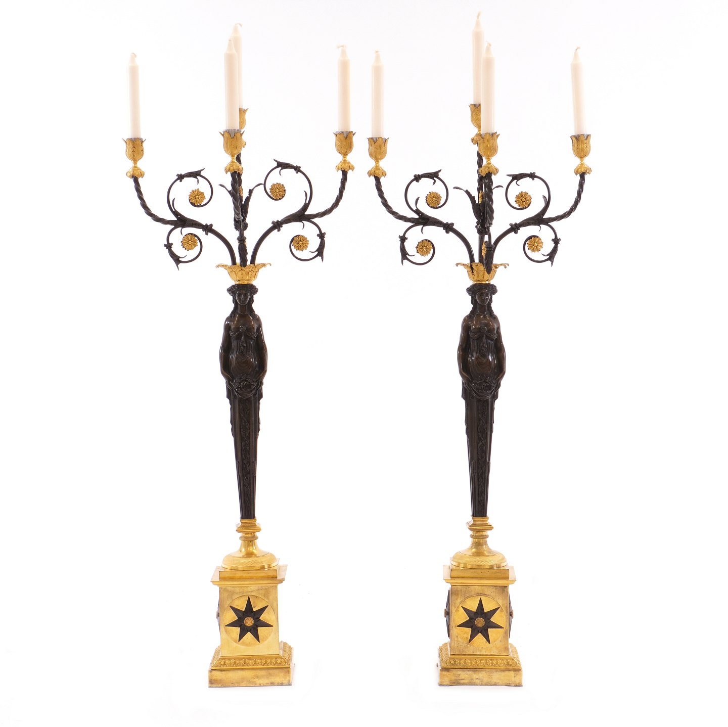 Pair of very large firegilt bronze candelabra. France circa 1810-20. H: 99cm