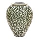 Stor Per Weiss vase i stentøj med grøn organisk dekoration med blå og grå stafferinger
