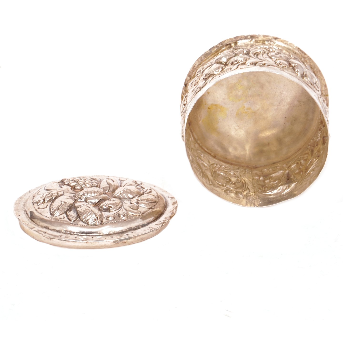 Drevet barok oblatdåse i sølv af Thore Sørensen, Aalborg, 1704-32