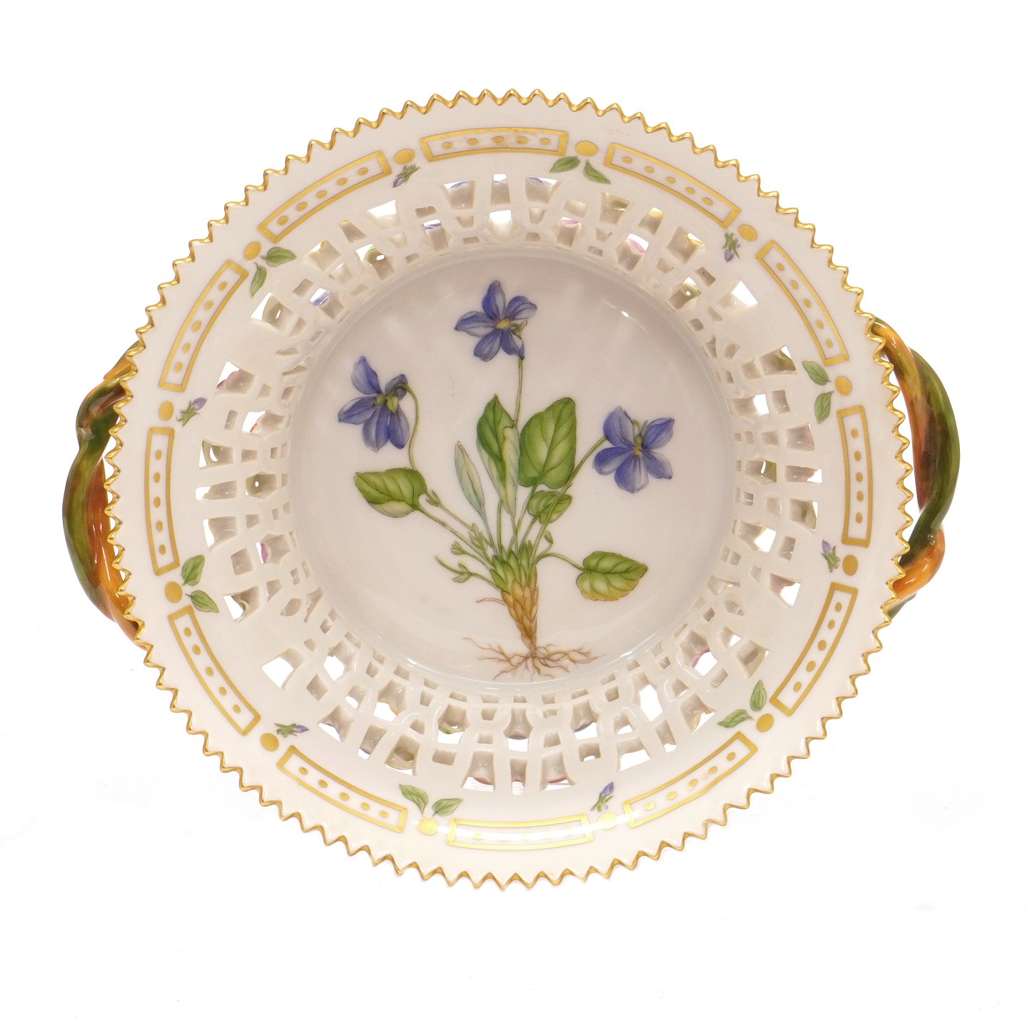 Flora Danica frugtkurv 3532 fremstillet af Royal Copenhagen. "Viola hirta L."H: 8,5. D: 18,5cm