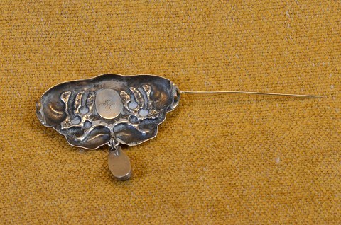 Brooch Art Nouveau in organic pattern of silver with a pearl of green agate in the center of the brooch and at the tip of the pendant. Stamped 830. Art No. 4