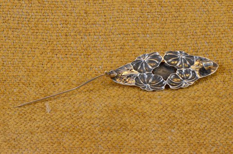 Brooch with flowers in silver and core of turquoise ceramics. Art Nouveau inspired. Stamped ARK 830S made by Aksel Rasmussen Kert. Art No. 12