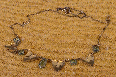 Necklaces gold plated adorned with leaves and faux aquamarine stone. Size.: 48 cm Art.No. 22