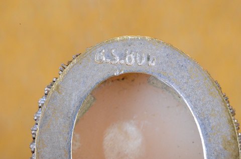 Cameo mini pendant with a lady head cut off conch, mounted in silver frame finely decorated edge and surrounded by twisted band. Size .: 2.2 * 2.0 cm. Art No. 47A