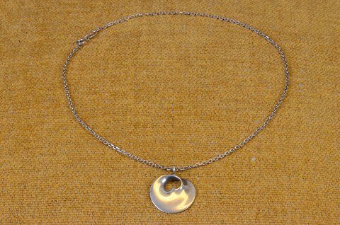 Silver Pendants Hidden Heart designed by Torun at George Jensen, incl. chain. Stamped 825S Torun George Jensen logo, Denmark. Size.: diameter 2.5 cm chain 20 cm. Art No. 85
