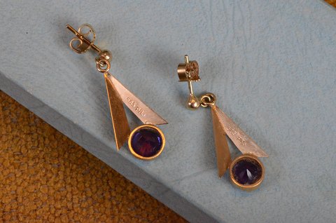 Ørestikker af guld med facetslebne ametyster. Stemplet 585 PRJ. Str.: 2,2 cm. Art. No. 114