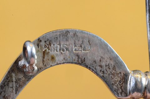 Broche af sølv formet som bue med 3 pile, smukt håndværk med spændt bue af snoet sølv. Stemplet 830 S. Str.: 8 * 6 cm. Art. No. 120