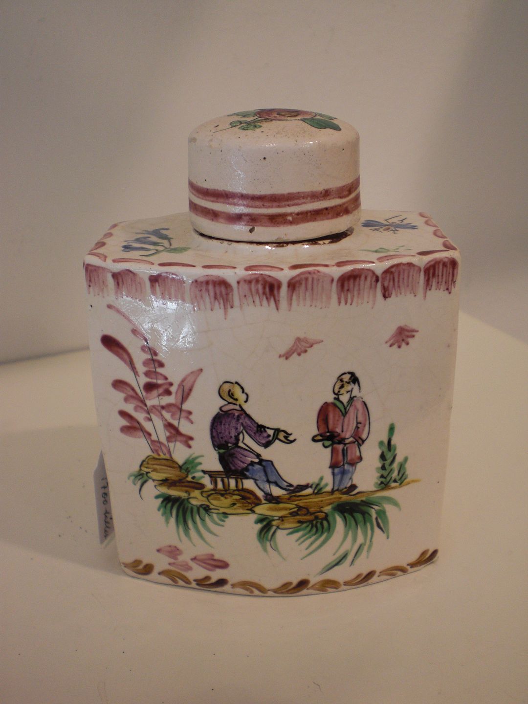 Tidlig fransk? te-dåse i fajance. Udlånt til A&A.