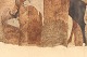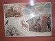 Julie Brabcova (1950 - 2008), Tjekkisk-dansk billedkunstner bosat i danmark 1978, indrammet akvarel. Motiv: Drømmebillede i snevejr med engel, ren, elge, rav, træ og et hus der ligner julemmandens hus. Lysmål: 20 x 29 cm.