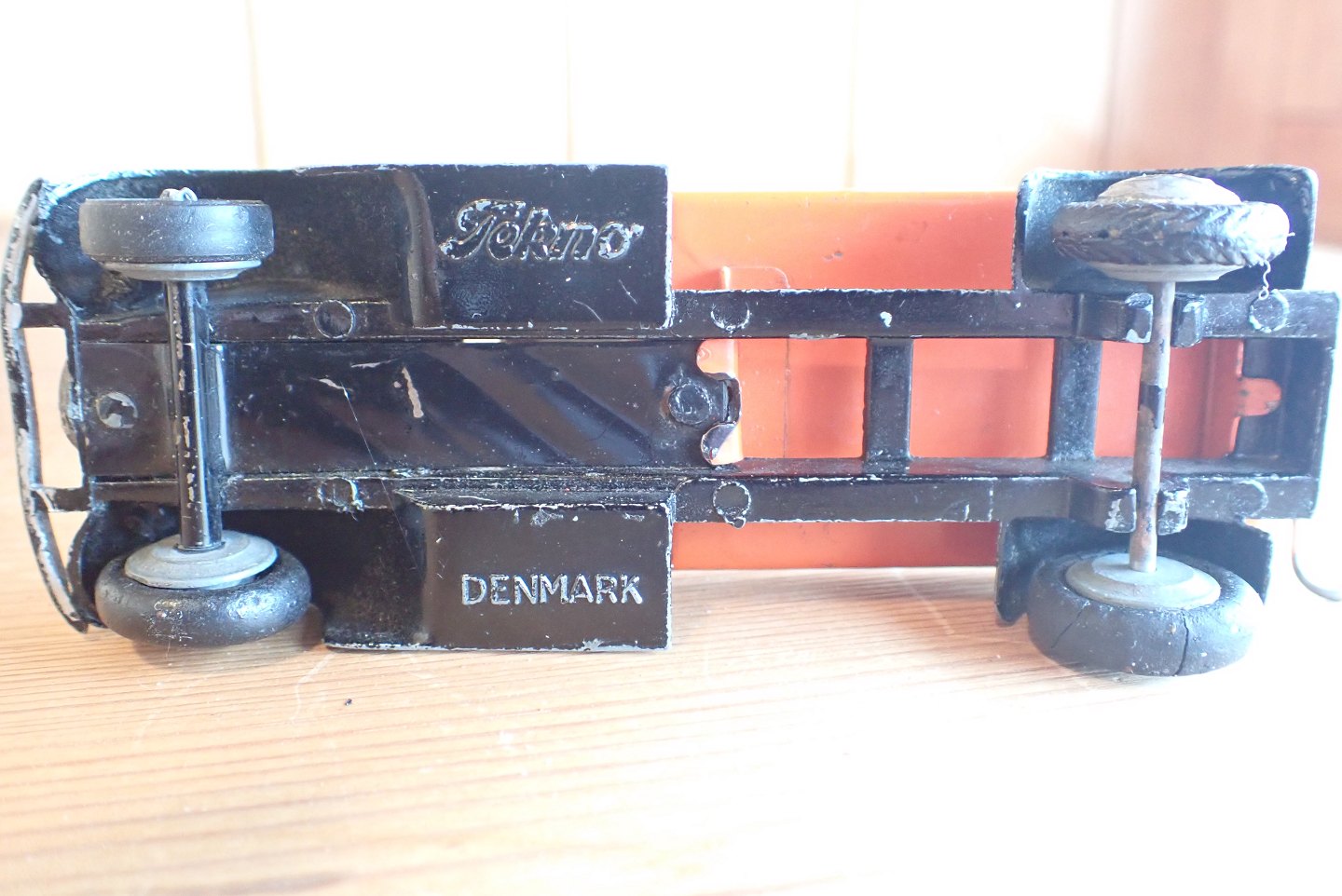3 Tekno biler med Zonen Redningskorps (ZR) (Dansk Legetøjs Industri 1928 - 2009) Stigebil pris: 500 kr., kran med et udskiftet for lille dæk og en manglende hjulkapsel Pris: 350 kr. Ambulance - måske overmalet pris: 350 kr. Længder 13 henholdsvis 13 cm.,11,5 cm. og 10,3 cm. mærket med Zonen Redningskorps og flag. Ca. 1950. alle i noget slidt stand