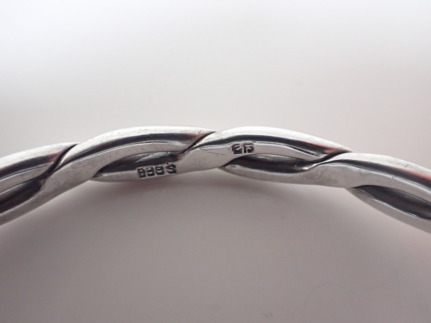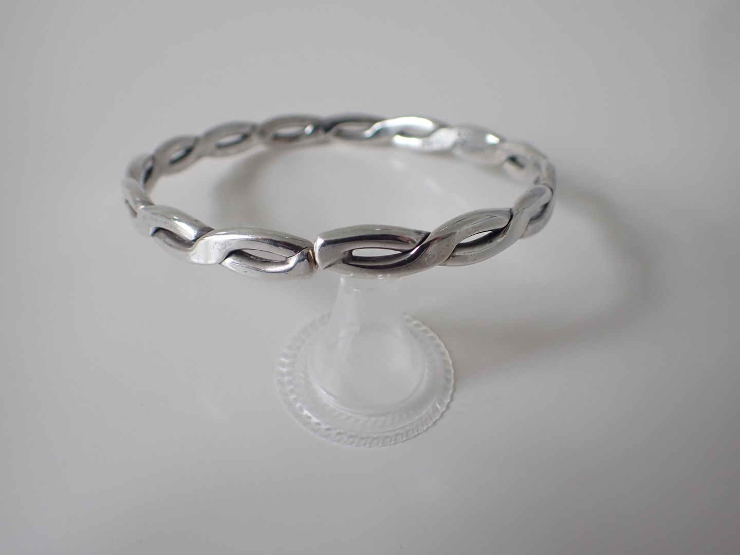 Evald Nielsen (1879 - 1958) - fladsnoet armring i sølv med åbning. Stemplet 830s, EN. Ca. 1930. Vægt: 33,1 gram. Indre diameter. 6,7 cm. Bredde: 0,9 cm. I pæn stand med tidstypisk slid.