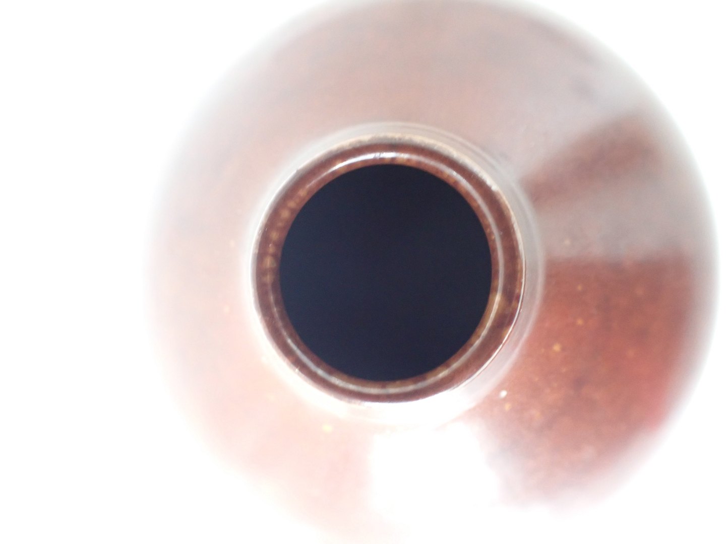 Eva Stær-Nielsen for Saxbo - dråbeformet stentøjsvase med brun harepelsglasur.