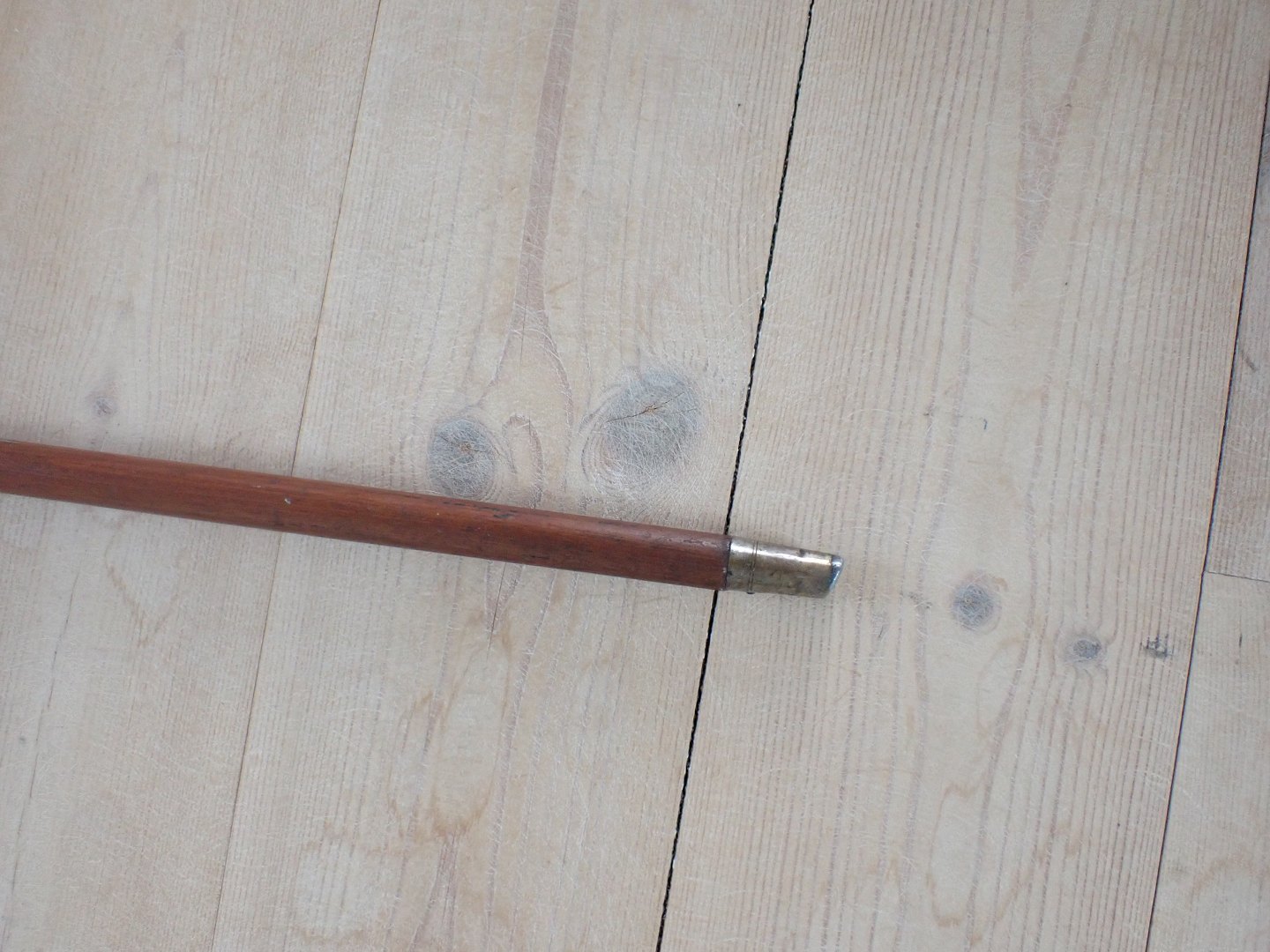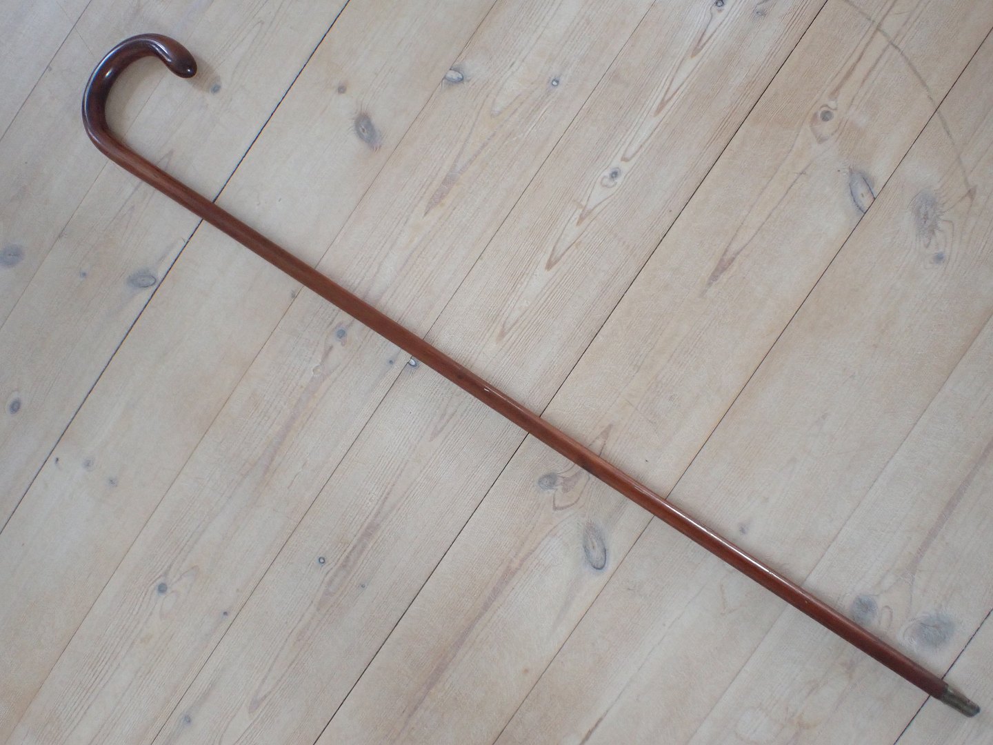 Klassisk mahogni stok med bøjet greb og metal dupsko. Formentlig engelsk ca. 1910. Længde: 86,5 cm. I fin stand.