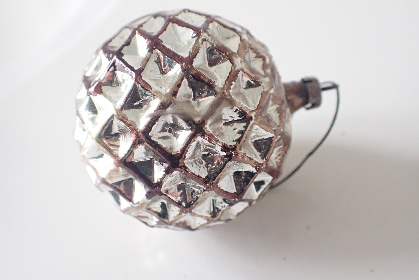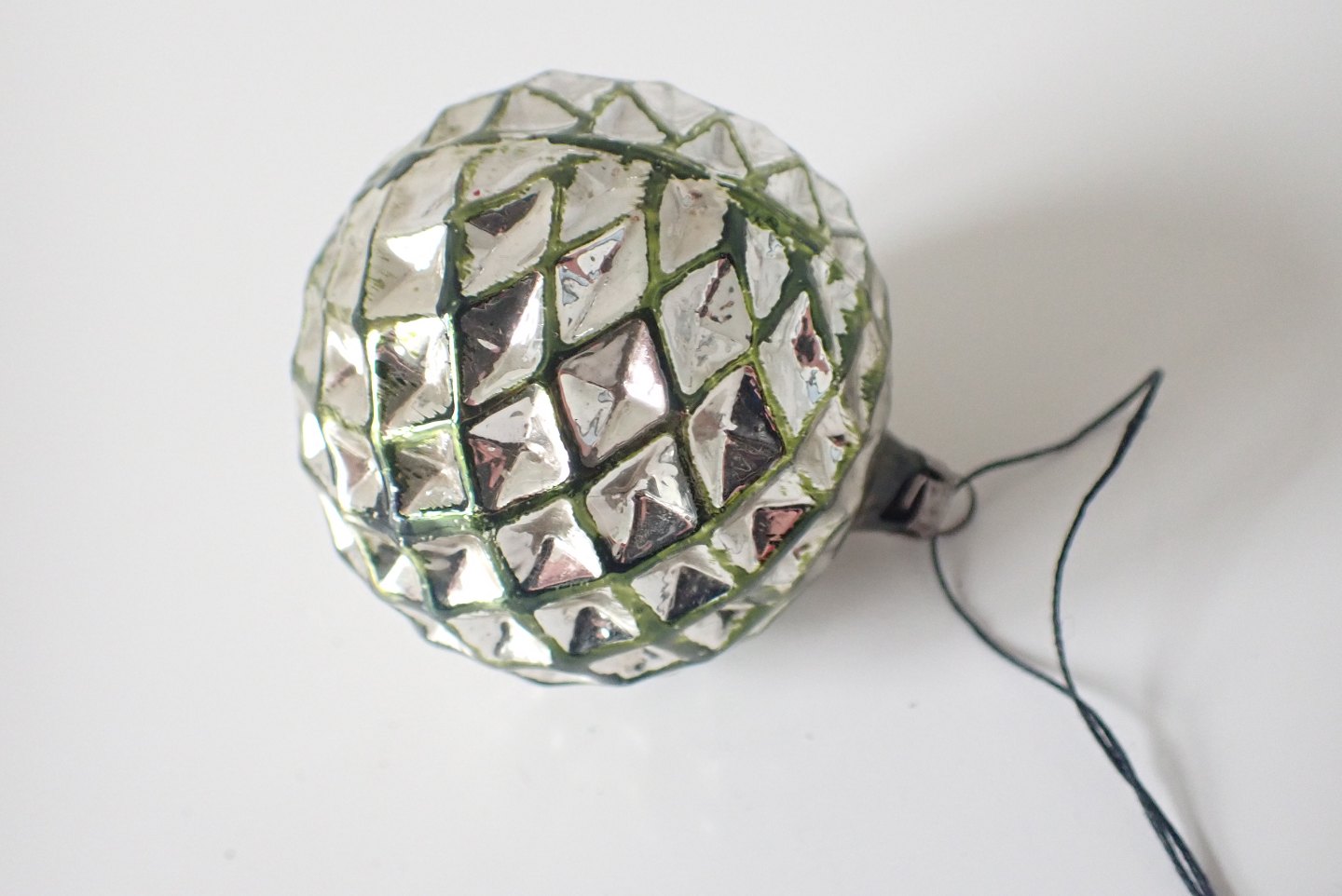 3 stk. glasjulepynt - "golfbolde" kugler med mange små reflektorer. Sælges individuelt.