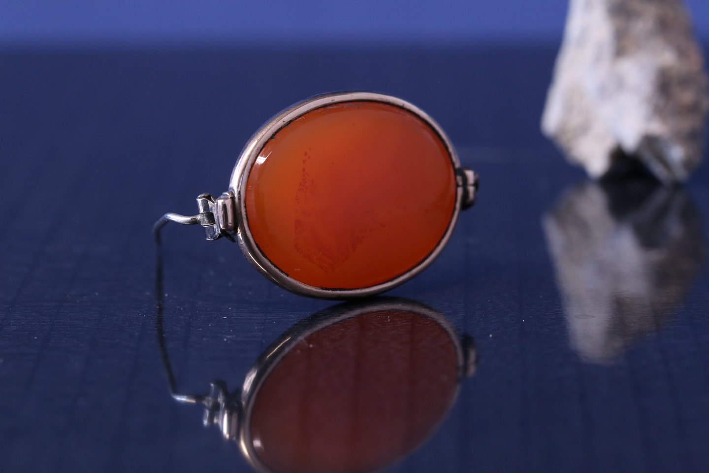 Gold brooch with large orange stone, and beautiful gold frame. The brooch will be a beautiful piece of jewelry for an elegant sweater or cardigan. Wear it in everyday life, or with a dress for festive occasions.