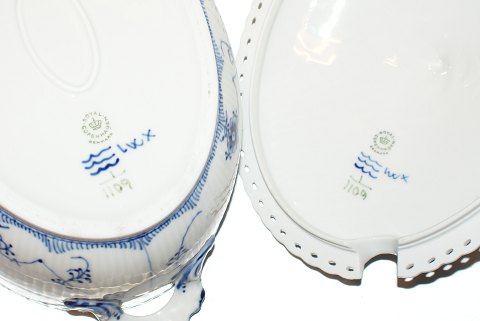 Kongelig Musselmalet Helblonde, Terrin 12 personer Fremstillet mellem 1969-1974 Dek.nr. er også 181+182+183 Dek.nr. 1109 1. sortering Højde 20 cm. Længde & Bredde: 31,5 x 20 cm. Flot og velholdt stand.