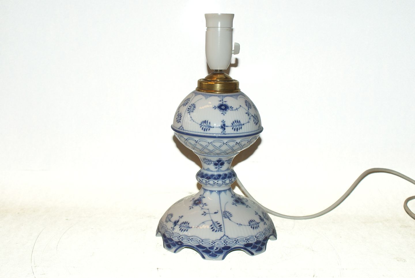 Kongelig Musselmalet Riflet, Lampe Produceret 1898-1922 Dekorationsnummer 1/379 1.Sortering Måler 17,5 cm. Højde med fatning 32 cm. Flot og velholdt stand.