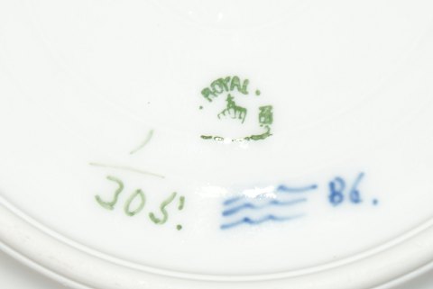 Kongelig Musselmalet Riflet, Salat fad / skål med rund krave Produceret 1898-1922 Dekorationsnummer 1/305 1.Sortering Diameter 21,5 cm. Flot og Velholdt.