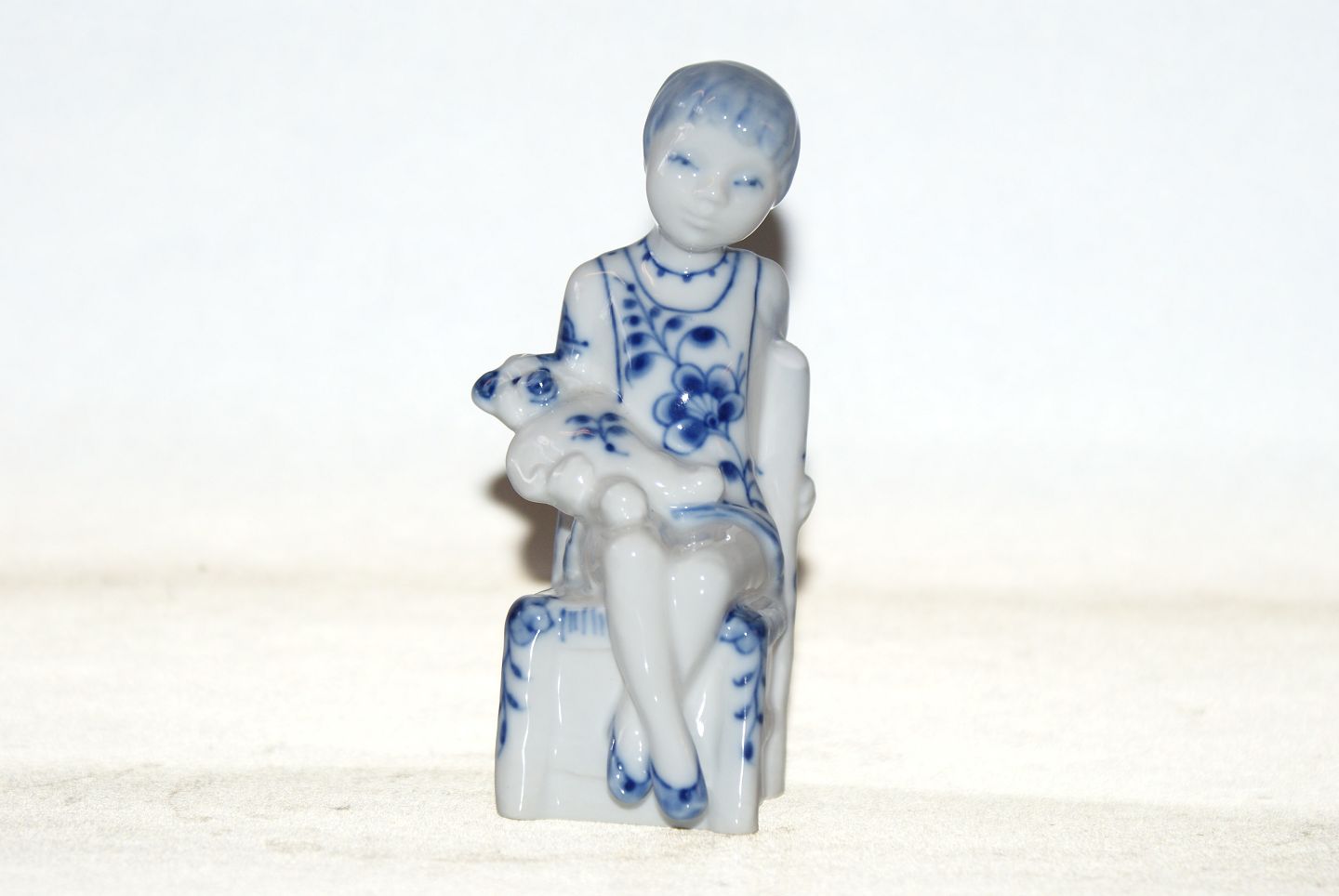 Royal Copenhagen Blue Fluted Plain, Girl with Teddy Bear Decoration number 1/5195 Height 12 cm. Perfect condition.