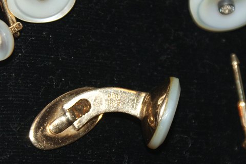 Shirt set with Diamonds 14 Carat Gold & Pearl