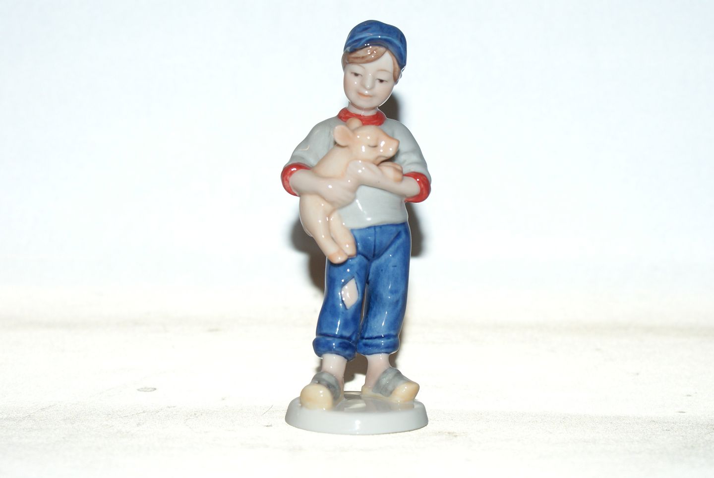 Bing & Grondahl Figurine, Figurine 2003 (Boy with Pig) 1st quality Size: 13.5 cm. Beautiful and well maintained.